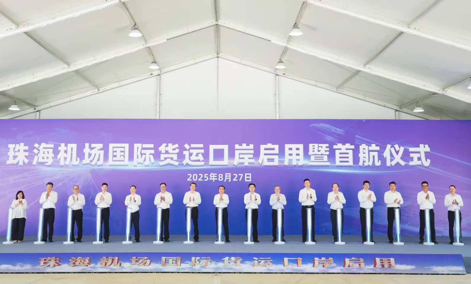 當天上午10時30分,主禮嘉賓共同宣佈貨運口岸啟用,隨後見證珠海機場國際貨運首航,標誌該口岸國際貨運區開始進入運營階段。珠海市交通運輸局介紹稱,本次首航航線是由順豐航空承運的珠海至越南河內線路,貨品主要是來自大灣區工廠直發的汽車零配件、3C類電子產品及半成品、鞋服等18噸貨品,從珠海飛往越南河內,全程只需2個小時。