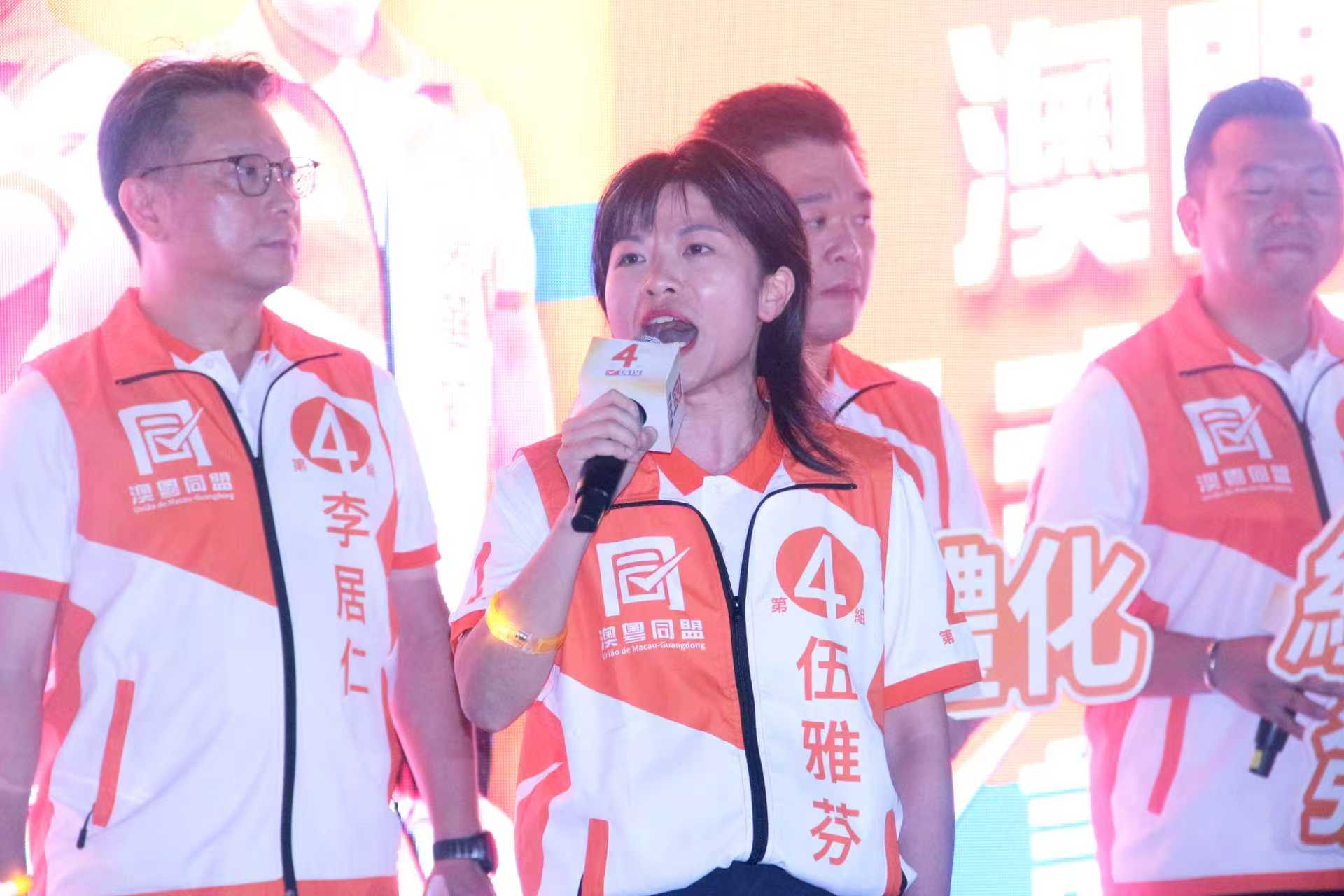 第三候選人伍雅芬聚焦青年群體需求,表示青年是未來和希望,是建設「幸福澳門」的重要力量,鄭重承諾「澳粵同盟」將推動政府持續優化青年服務體系,從求學到就業再到創業,為澳門青年搭建全方位支持平台。
