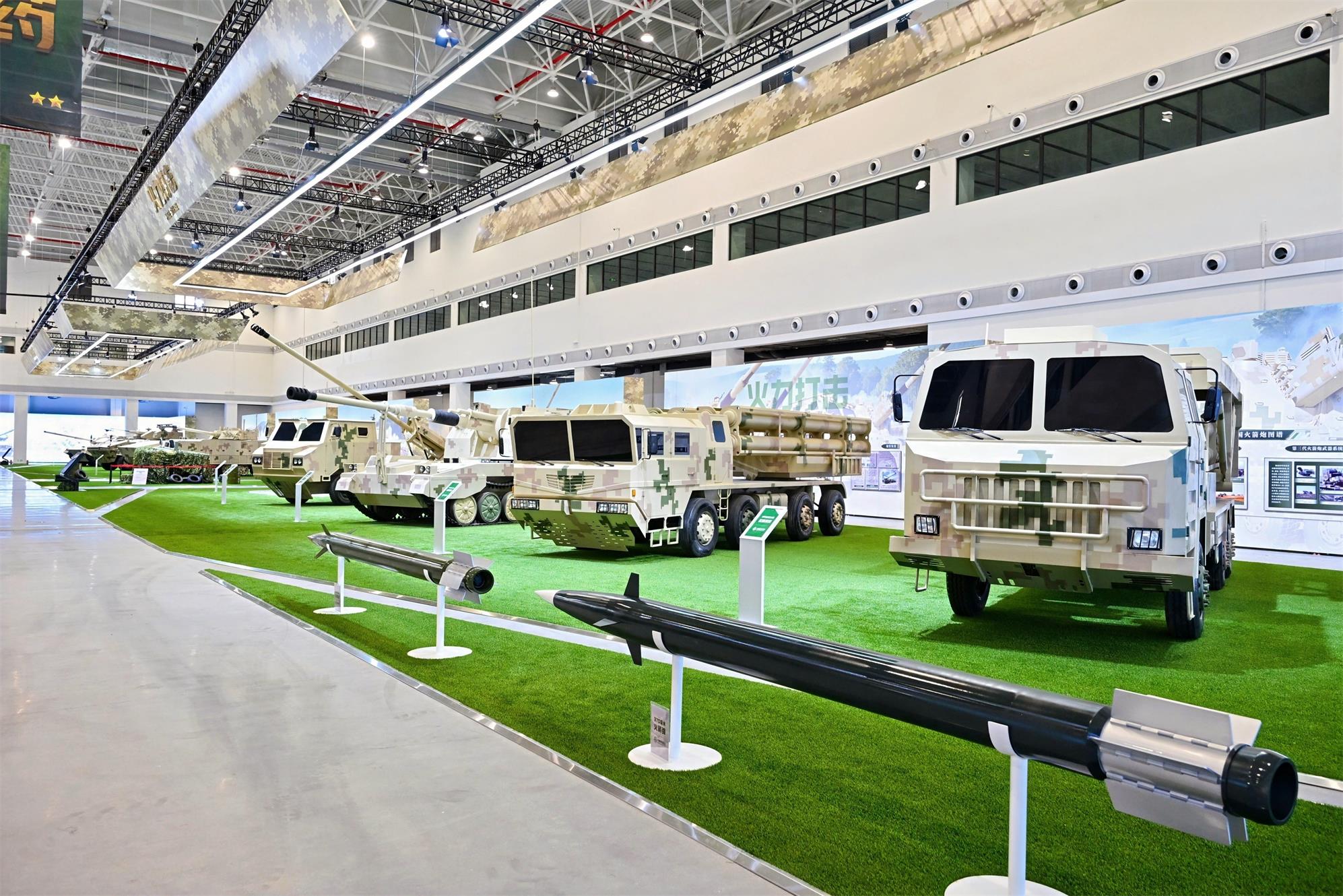 中國兵器館位於珠海國際航展中心9-10號館,總布展面積達1.24萬平方米,館內陳列眾多極具歷史價值與科技含量的國防裝備和沉浸式的軍事互動體驗項目。室外展陳區域主要展示坦克、裝甲車、火炮等退役裝備;室內展陳區域分為機動突擊、火力打擊、破甲攻堅、末端防禦、智慧彈藥、單兵作戰六大板塊,主要展示陸軍輕型坦克和重型步兵戰車;新中國自主研製的首款大口徑功勳火炮、國際領先的車載加榴炮與多管火箭炮系統;反坦克導彈、自行防空系統;無人機、巡飛彈等,觀眾可近距離接觸坦克、裝甲車、導彈車、無人機、冷熱兵器等多種武器裝備,感受“大國重器”的震撼與魅力。同時,場館內廣泛引入先進展陳技術,拓展實景模擬、交互體驗等功能,規劃設置了坦克駕駛、單兵跳傘、防衛戰術體驗等18個互動體驗項目,通過前沿科技的深度融合,增強觀眾參與感與沉浸感,為觀眾構建身臨其境的“真實戰場”,體驗挑戰極限的樂趣與快感。