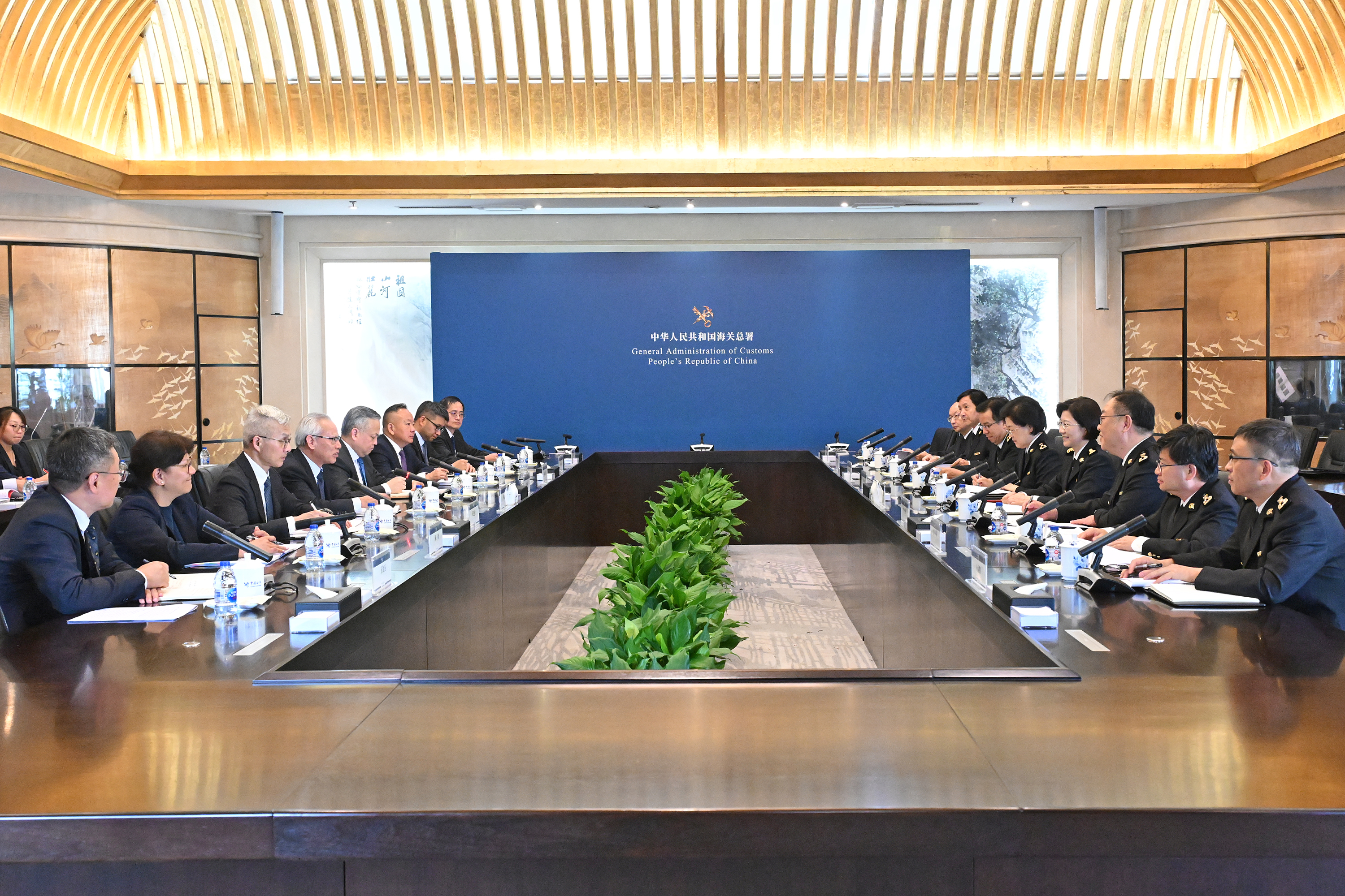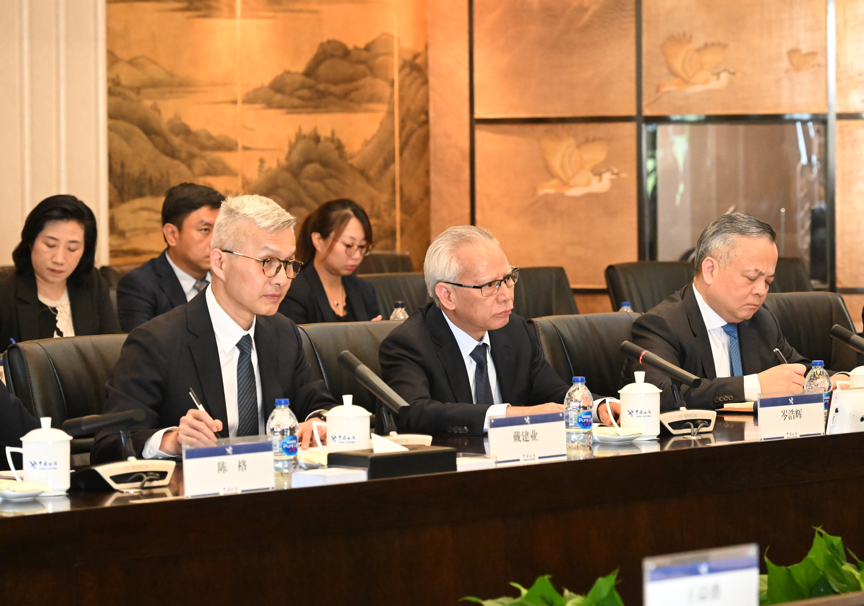 參與會面的還有經濟財政司司長戴建業、澳門海關關長何浩瀚、行政長官辦公室主任陳格、政策研究和區域發展局局長張作文;以及海關總署綜合業務司司長林少濱、自貿和特殊區域發展司司長潘城、衛生檢疫司司長朱兆銀、動植物檢疫司司長王益愚等。