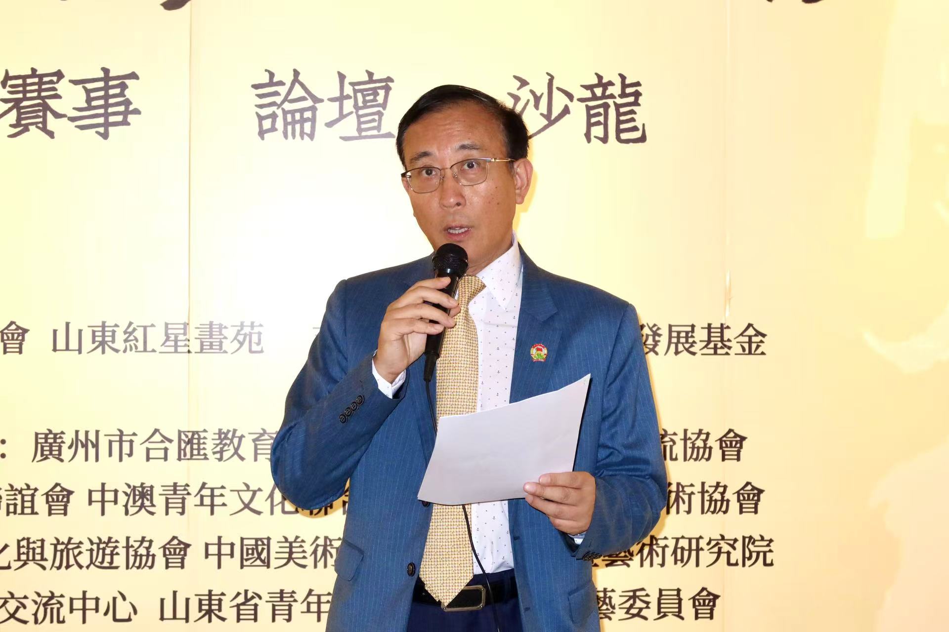 汪義亮在致詞中表示,自2017年以來,中華石敢當魯澳美術交流系列展已歷經八載春秋,始終以文化為紐帶,持續搭建起山東與澳門之間藝術對話的橋樑。石敢當文化是中華文脈中極具生命力的瑰寶,而交流展正讓這份深厚的文化遺產在魯澳兩地煥發出新的生機,實現了歷史底蘊與當代藝術的深度融合與雙向互動。他強調,澳門歷來是中西文化交流的重要樞紐,而石敢當文化則是凝聚華人情感、傳承民族精神的重要紐帶,期盼藉由此次展覽作為橋樑,讓更多觀眾感受中華書畫藝術的獨特魅力,推動千年文脈在新時代綿延不絕、薪火相傳。
