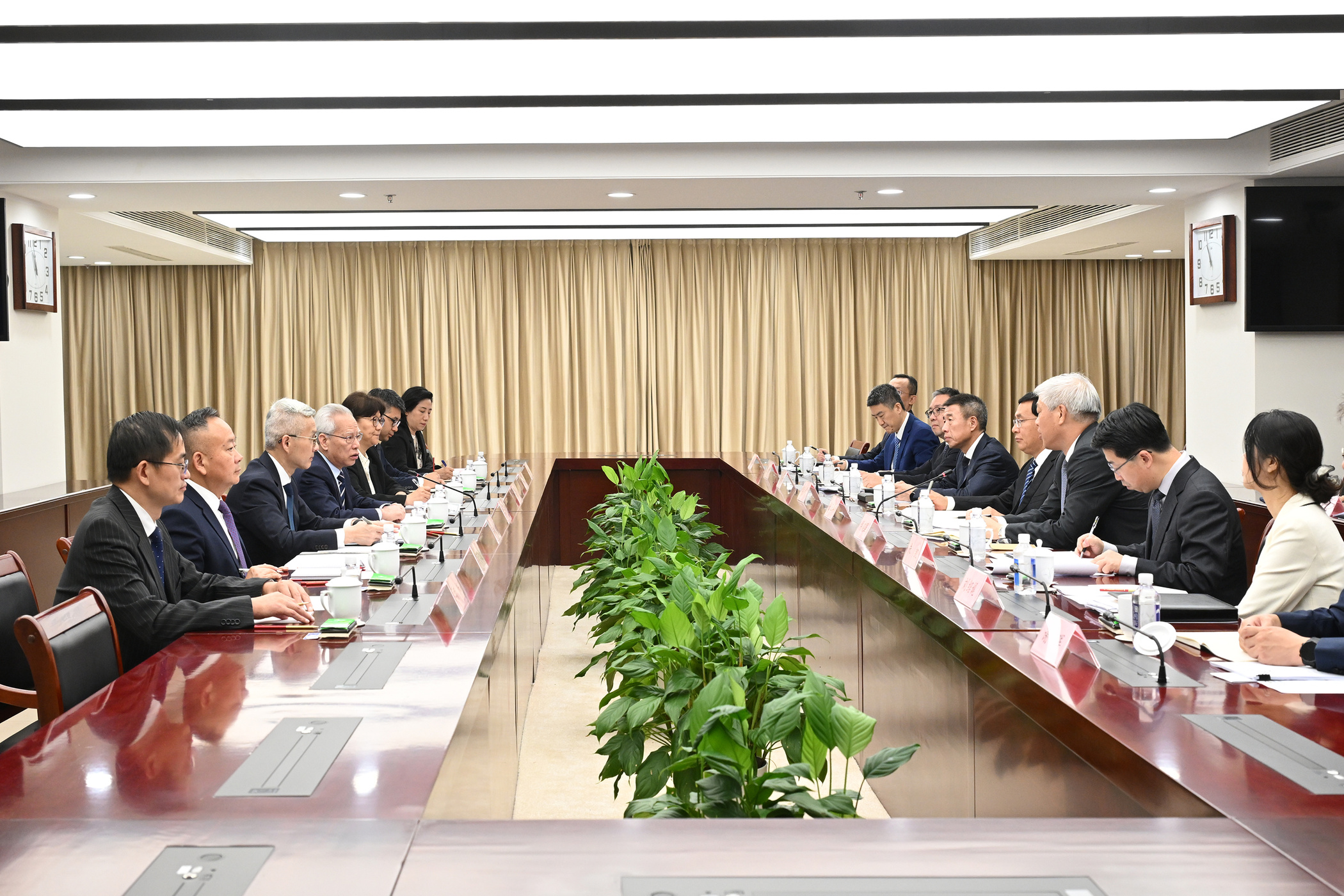 【即時新聞】正在北京的行政長官岑浩輝今(5)日上午與國務院國有資產監督管理委員會主任張玉卓會面,雙方就央企國企持續支持澳門經濟適度多元發展及橫琴粵澳深度合作區建設、澳門進一步發揮中葡商貿平台優勢等議題交流意見。
