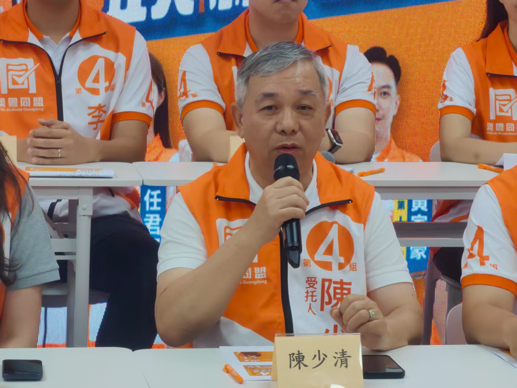 發佈會下午三時假澳粵同盟氹仔競選總部舉行,由「澳粵同盟」總幹事劉家裕主持,受託人陳少清及十四位候選人柳智毅、李居仁、伍雅芬、李蔭良、盧德基、吳華威、陳嘉豪、李耀坤、陳文浩、任君賢、甘智光、黃家豪、林華傑及凌家珍等出席,圍繞「經濟更有活力、民生更可持續、澳粵合作更協調、青年更有希望、社會治理更高效」五大核心範疇,以不同年齡層需求為切入點,闡述政綱內容及政策主張,呼籲市民在9月14日投票支持第四組。
