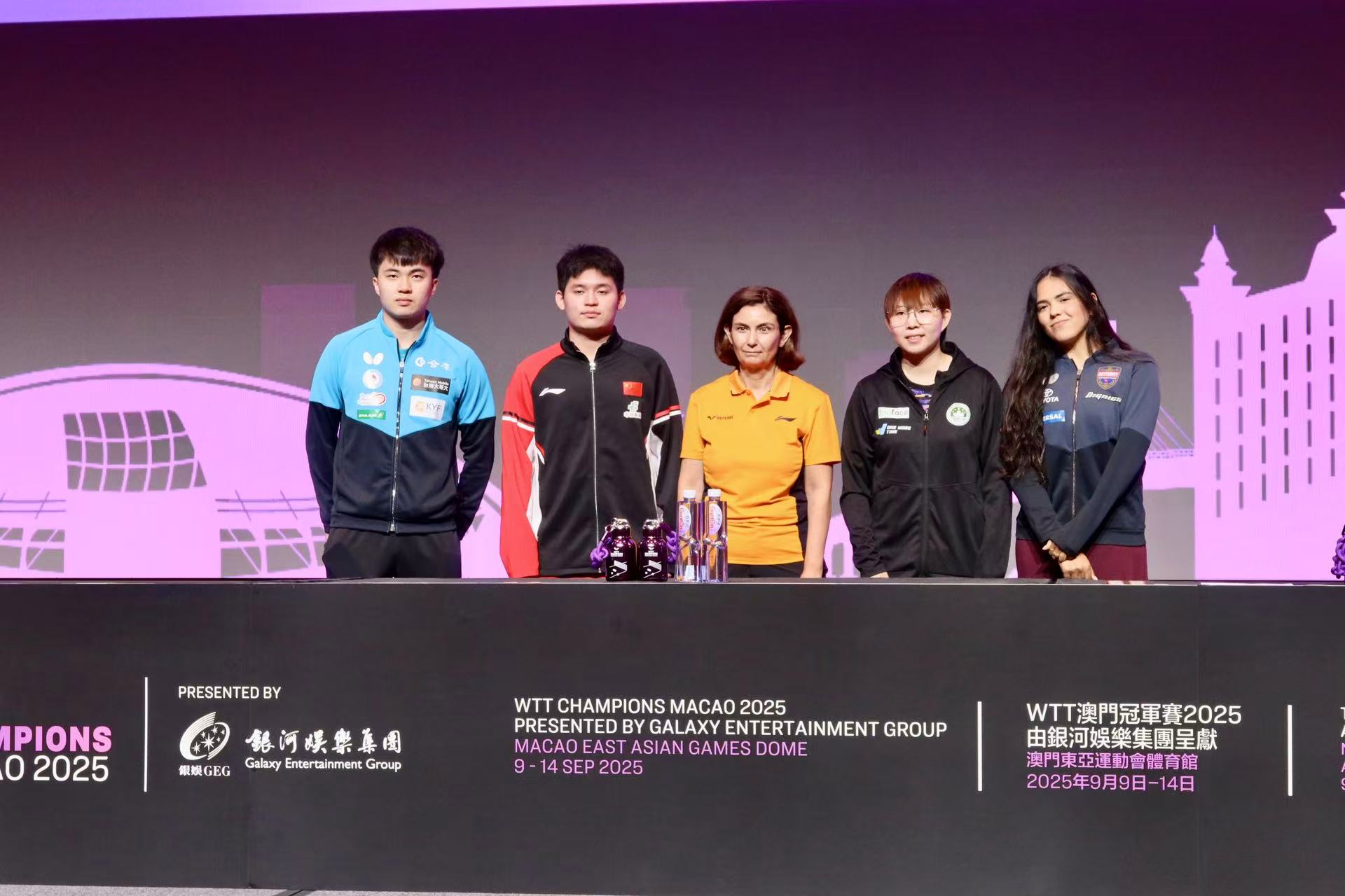 【即時新聞】由體育局、WTT世界乒乓球職業大聯盟及銀河娛樂集團主辦,澳門乒乓總會協辦的「WTT 澳門冠軍賽2025由銀河娛樂集團呈獻」將於9月9日至14日在澳門東亞運動會體育館舉行,主辦單位下午進行抽籤儀式,中國球員林詩棟、中華台北球員林昀儒、中國澳門球員朱雨玲、波多黎各球員阿德里安娜·迪亞茲等出席。