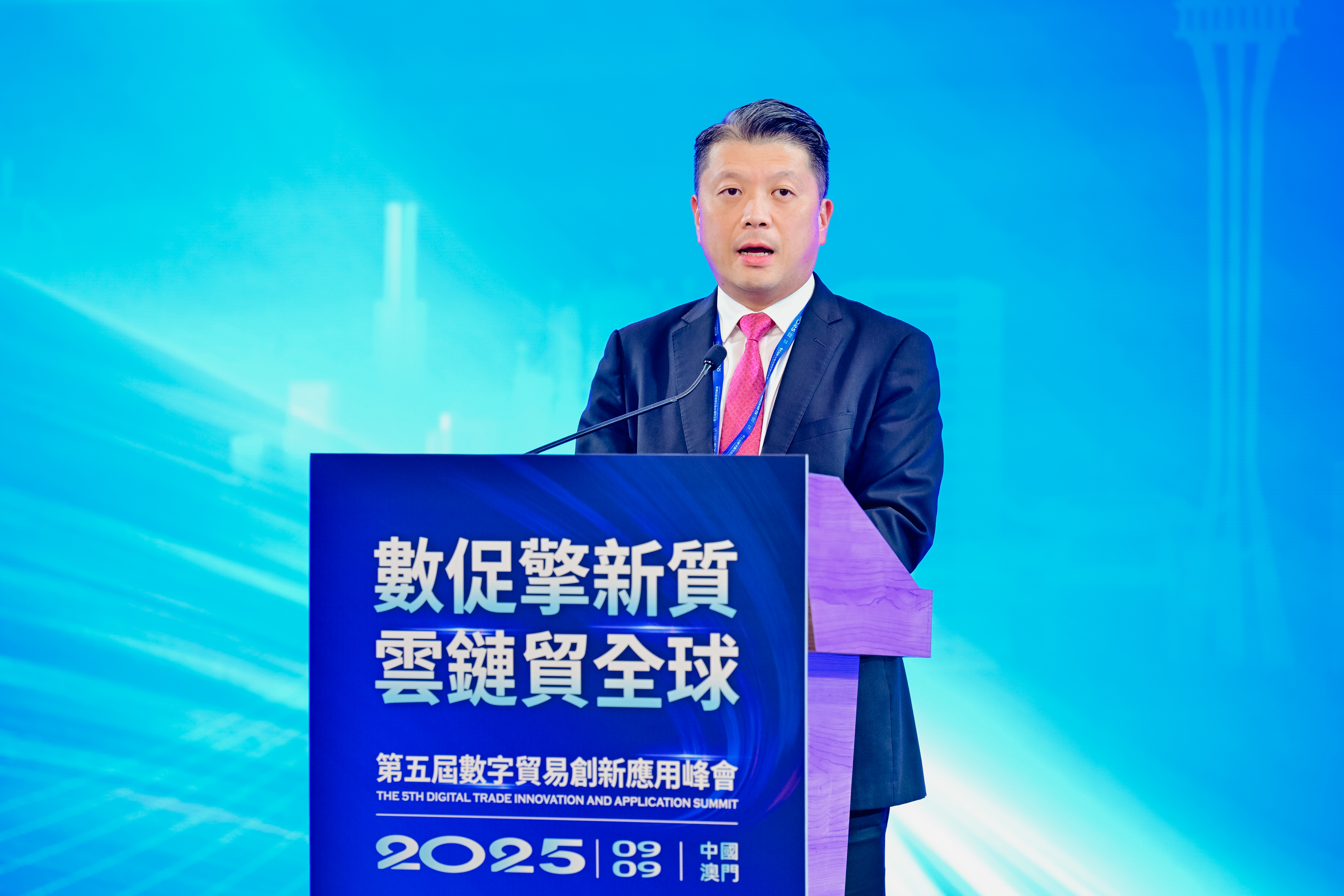 【即時新聞】由澳門質量品牌國際認證聯盟與融貫雲洲(珠海橫琴)數字科技有限公司共同主辦的第五屆數字貿易創新應用峰會下午在旅遊塔舉行。本屆峰會以「數促擎新質·雲鏈貿全球」為主題,冀搭建起高端交流平台,為全球數字貿易發展照亮前行之路。中聯辦經濟部副部長楊全州,澳門經科局副局長陳祖榮,澳門工商聯會會長/澳門質量品牌國家認證聯盟主席何敬麟,澳門行政會委員、澳門大學積體電路國家重點實驗室聯合創始人余成斌,廣東省委橫琴工委委員、省橫琴辦副主任葉真,澳門科學技術發展基金行政委員會主席余雨生,澳門政發局局長張作文,韓國如意購物株式會社主席、議長趙炳相,韓俄文化交流協會秘書長楊時憲,珠海市發展和改革局黨組書記、局長、市大灣區辦主任吳卓文,融貫雲洲董事長烏蘇晉等參加活動。
