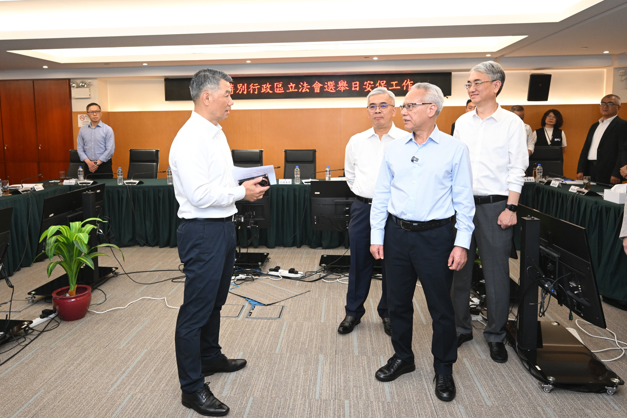 下午3時20分到化地瑪聖母女子學校票站視察,隨後又到警察總局,了解跨部門聯合行動指揮中心的運作情況。