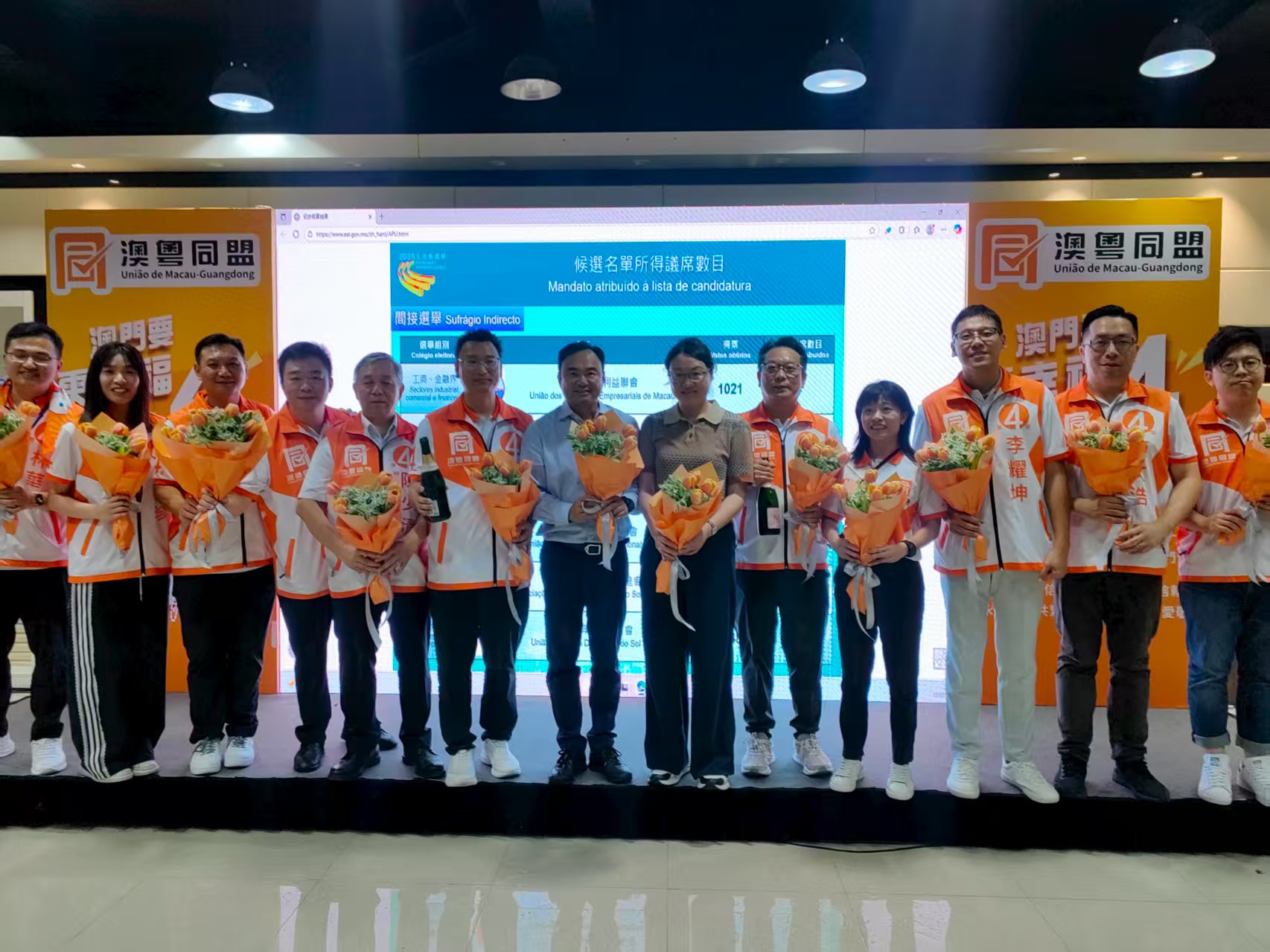 澳粵同盟團隊邀請21個地級市的粵籍社團以及省級友好社團首長,共同在澳粵同盟澳門競選總部觀看點票結果。經立法會選舉管理委員會點票後確認,澳粵同盟團隊第一候選人柳智毅、第二候選人李居仁,順利當選第八屆立法會直選議員。澳粵同盟總幹事劉家裕感謝澳門市民、省級及粵籍社團對澳粵同盟團隊的支持及信任,順利推動讓澳粵同盟團隊選人柳智毅以及李居仁進入立法會,為粵籍鄉親及全澳市民服務。