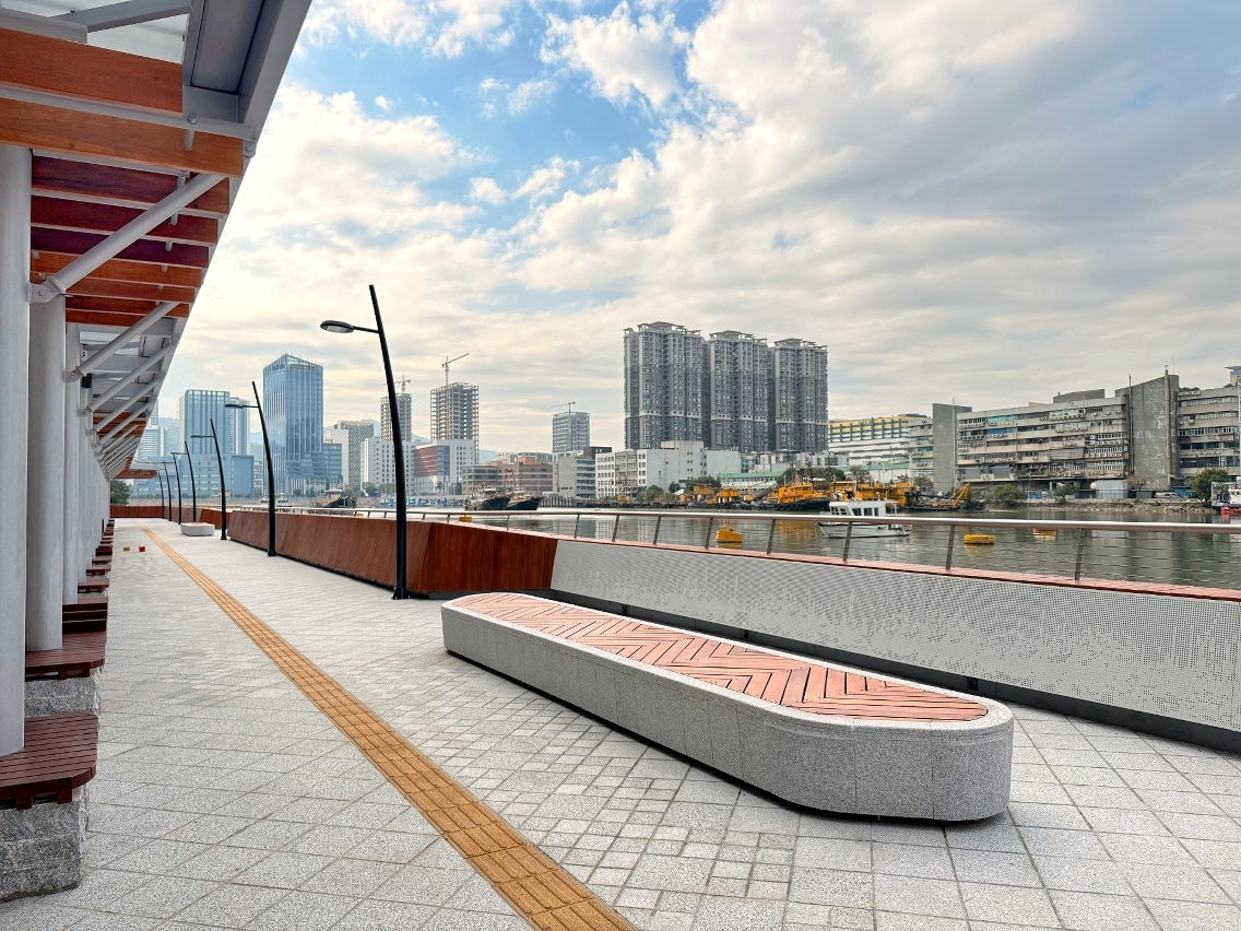 市政署藉此工程亦增建了海濱休憩區。休憩區總面積近二千二百平方米,設有健身區、兒童互動區、觀景平台等多項功能。休憩區已開放使用,同時與目前的筷子基北灣休憩區連為一體,為區內居民提供優質戶外活動空間,整體提升區內的休憩環境。另外,筷子基北灣周邊仍有工務部門之工程施工,提醒市民留意現場圍封及交通指示,注意安全。