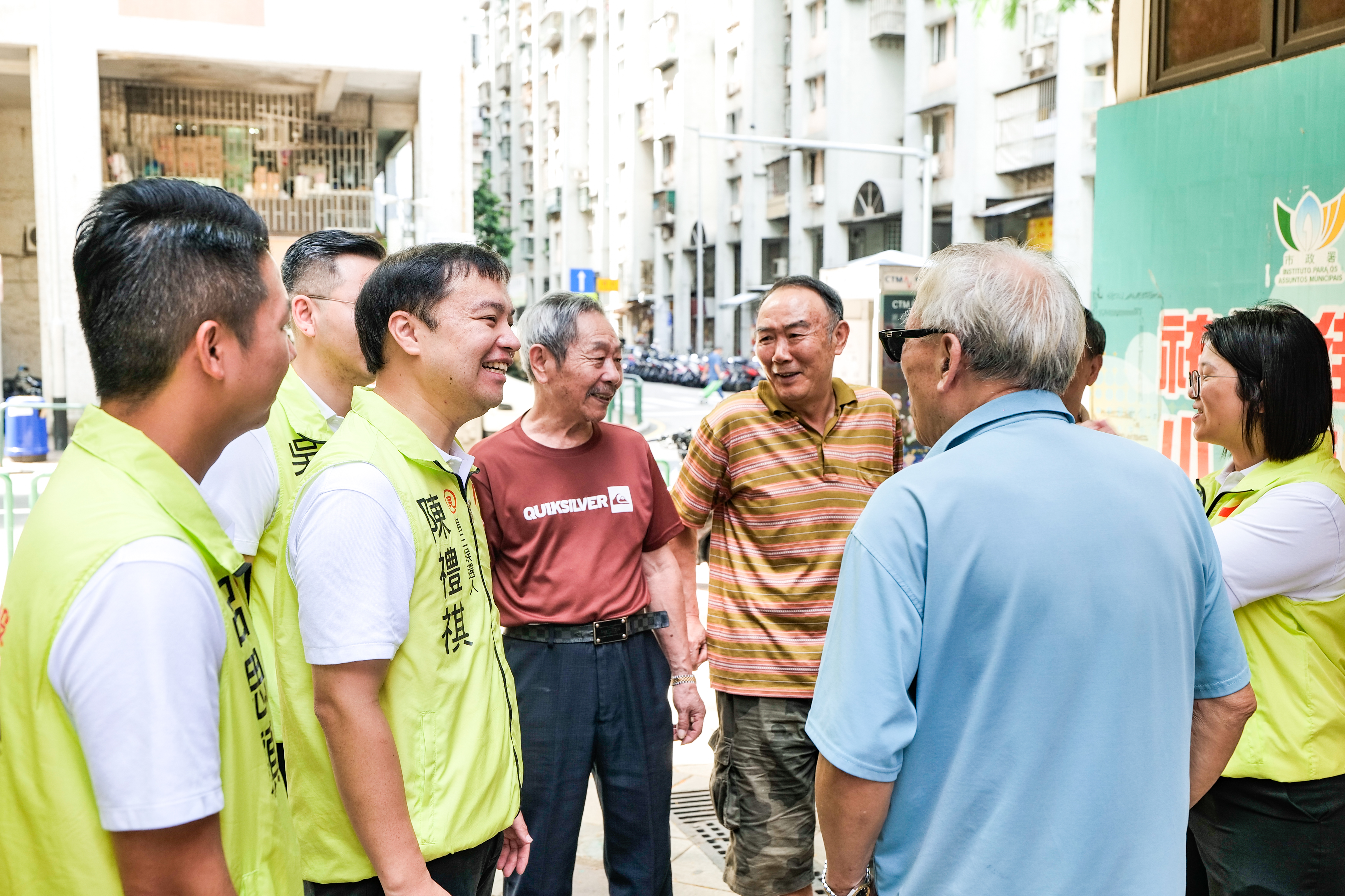 【即時新聞】第八屆立法會選舉第1組「民聯協進會」當選的3名候選人宋碧琪、李良汪和陳禮祺,與受托人陳明金以及團隊成員昨日上午到祐漢一帶進行謝票,沿途向居民握手表達謝意,並和居民溝通交流,收集意見。