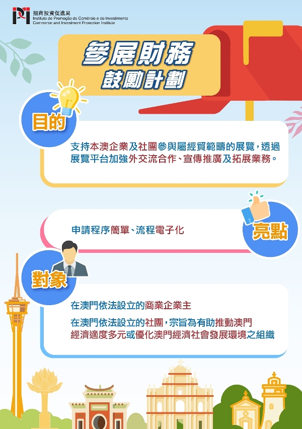 【即時新聞】為進一步提升澳門會展業的國際競爭力與發展活力,推動會展活動邁向國際化、專業化、數字化、綠色化,招商投資促進局(下稱“招商局”)修訂了《會議及展覽激勵計劃》以及《參展財務鼓勵計劃》,並於今(18)日舉行了說明會介紹優化內容。