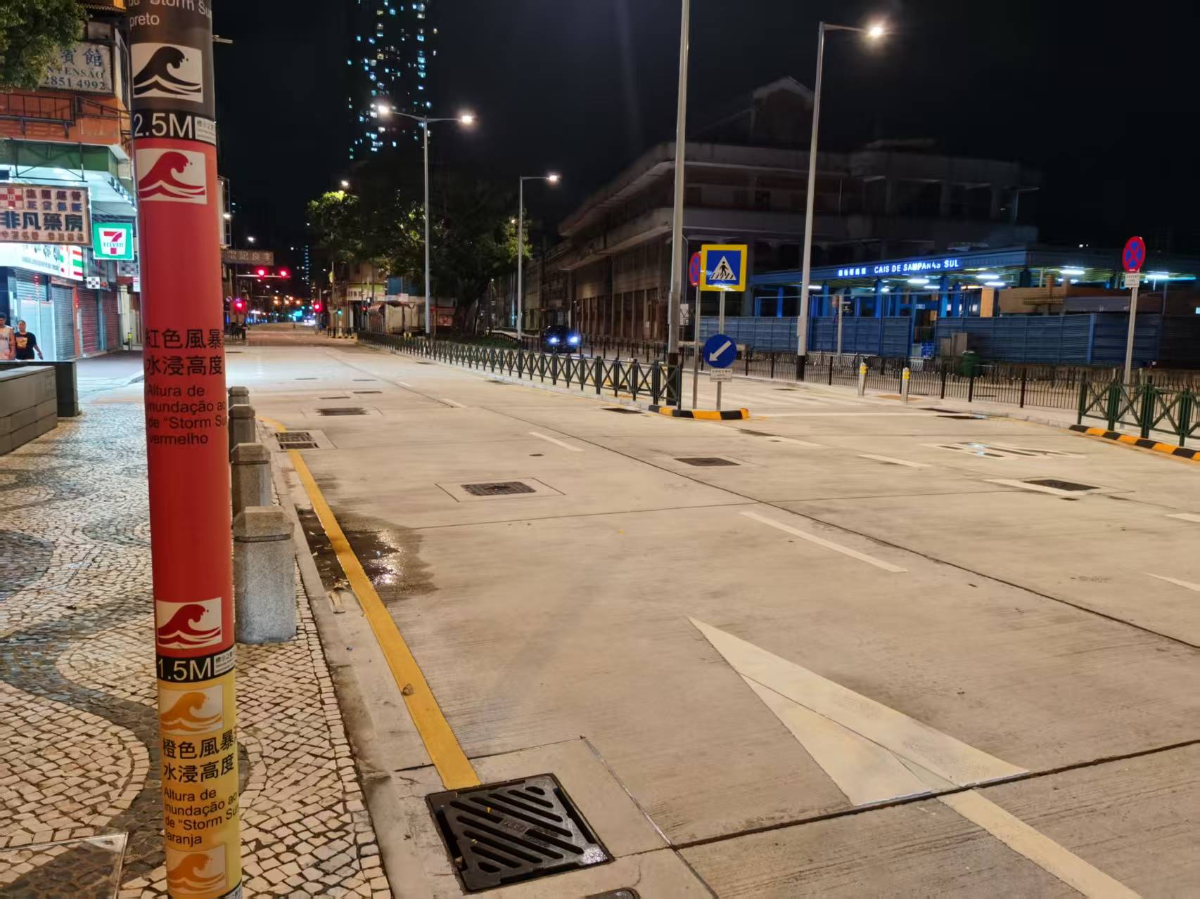本澳入夜後,市面冷清,大部份商鋪已經關門停業,新馬路及下環街人流稀少,但風雨不大。根據社會工作局資料:避險中心於晚上10時的使用人數:554。避險中心開放至今累計使用人數:600。