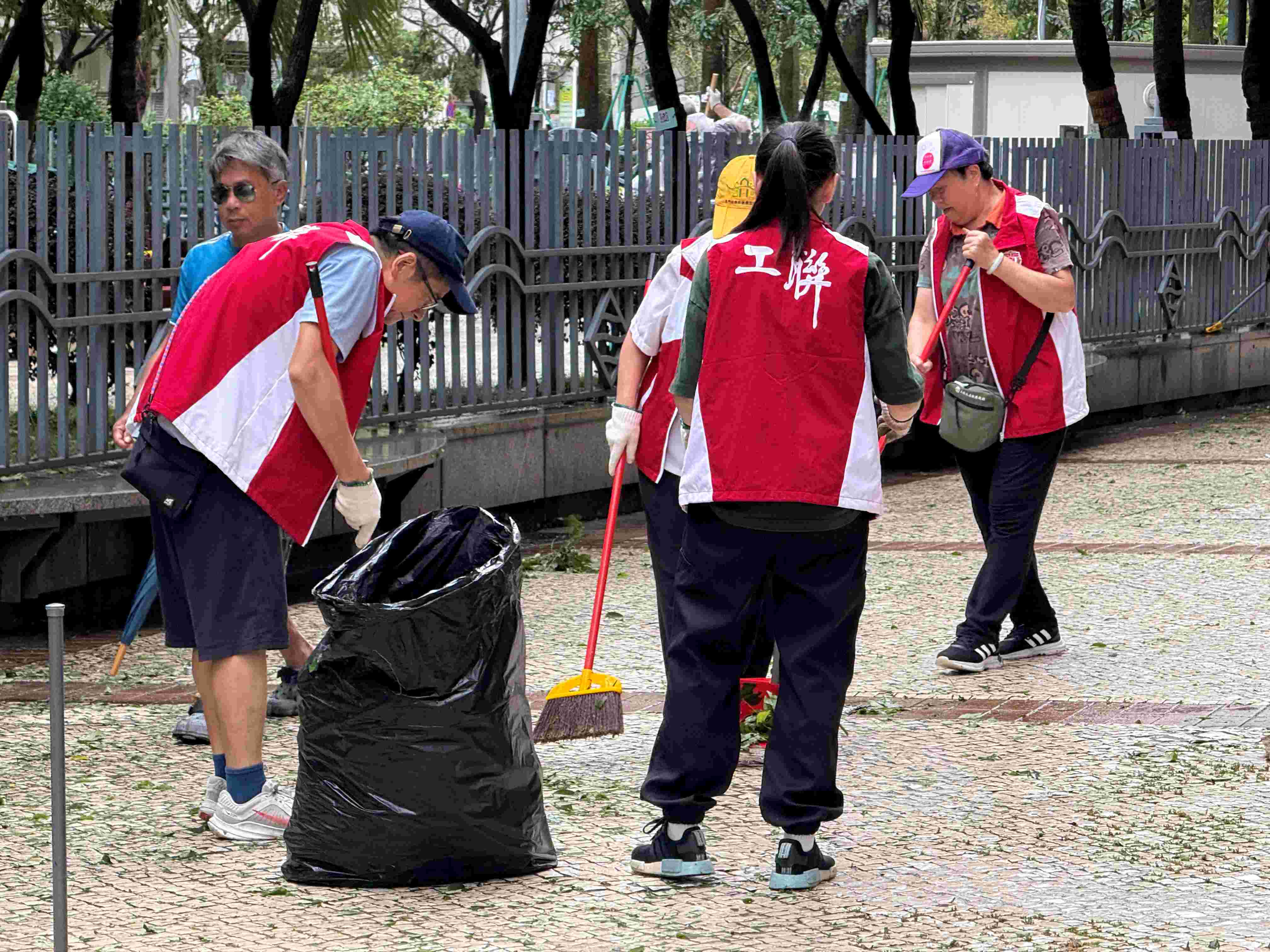 另外,部分社團組織義工隊以到區內各個街道清理沿路樹枝落葉及垃圾,保障社區環境。