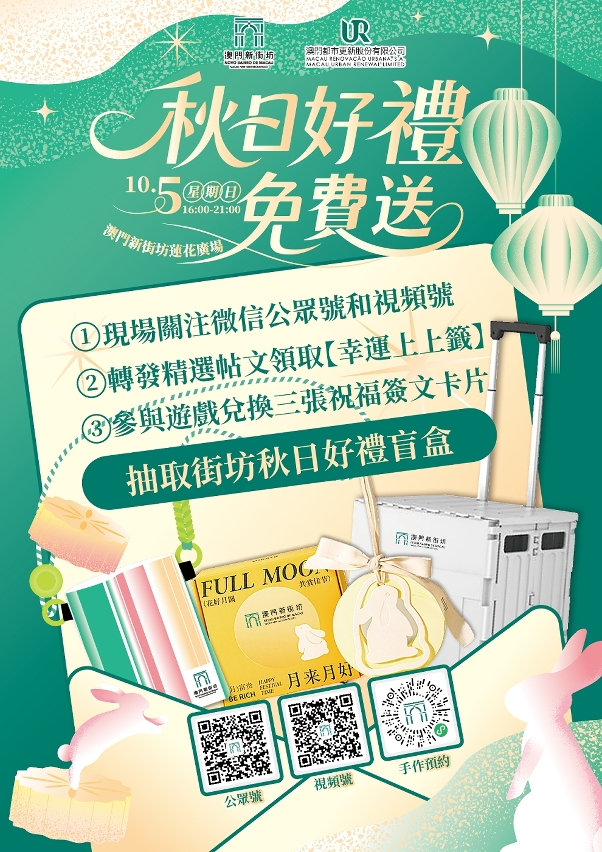此外,非住戶之澳門居民前來參加活動,完成簡單問卷後即可獲得神秘禮物乙份,誠邀市民攜同親友親臨澳門新街坊現場同慶佳節,共賞明月。