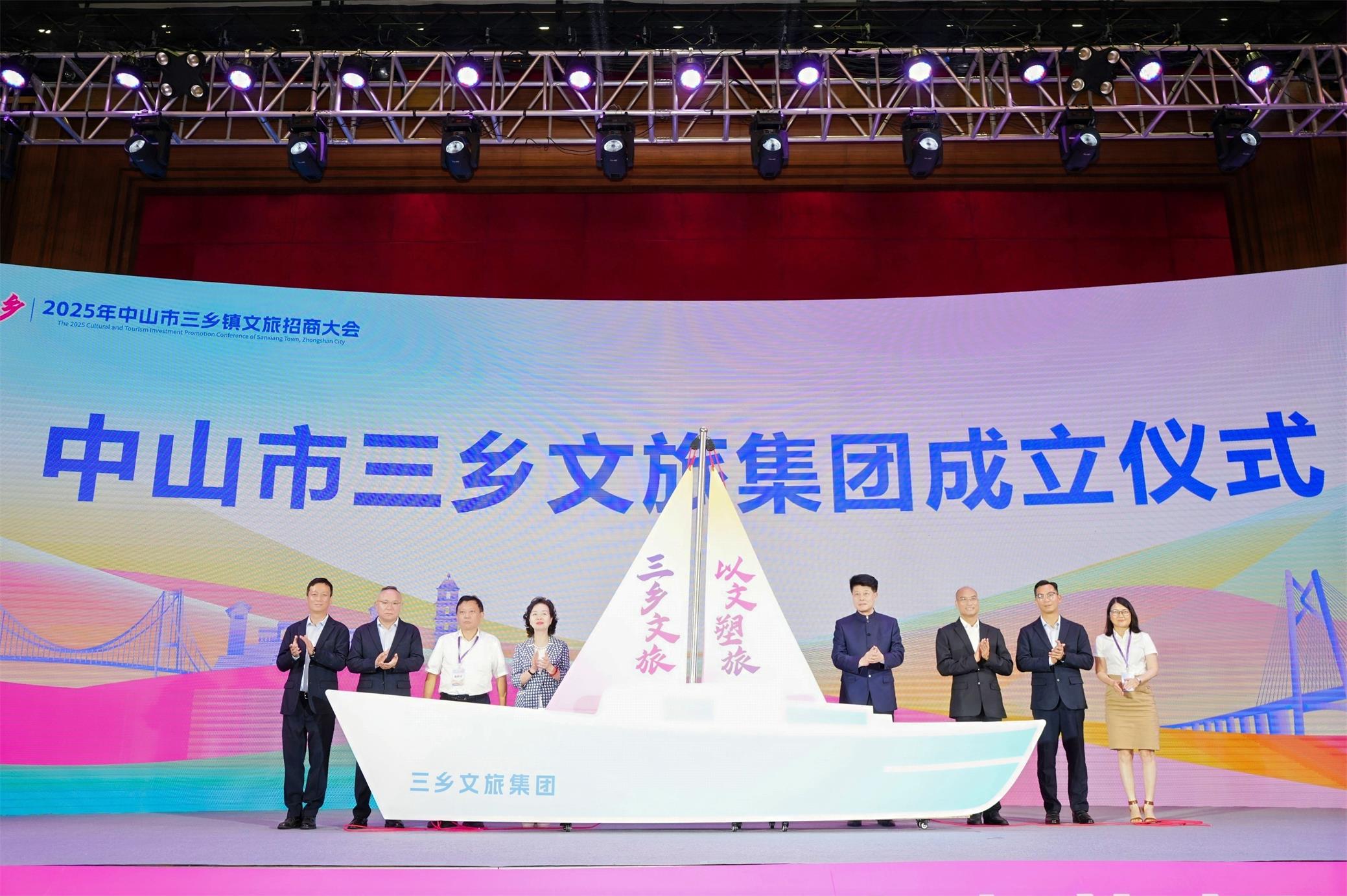 大會另一重要環節為中山市三鄉文旅集團正式揭牌成立。在與會嘉賓的共同見證下,三鄉鎮主要領導與嘉賓代表共同為集團揭牌。集團將作為整合區域文旅資源、統籌項目開發與運營的重要平臺,標誌著三鄉鎮在推進文旅產業專業化、市場化、品牌化進程中邁出關鍵一步。