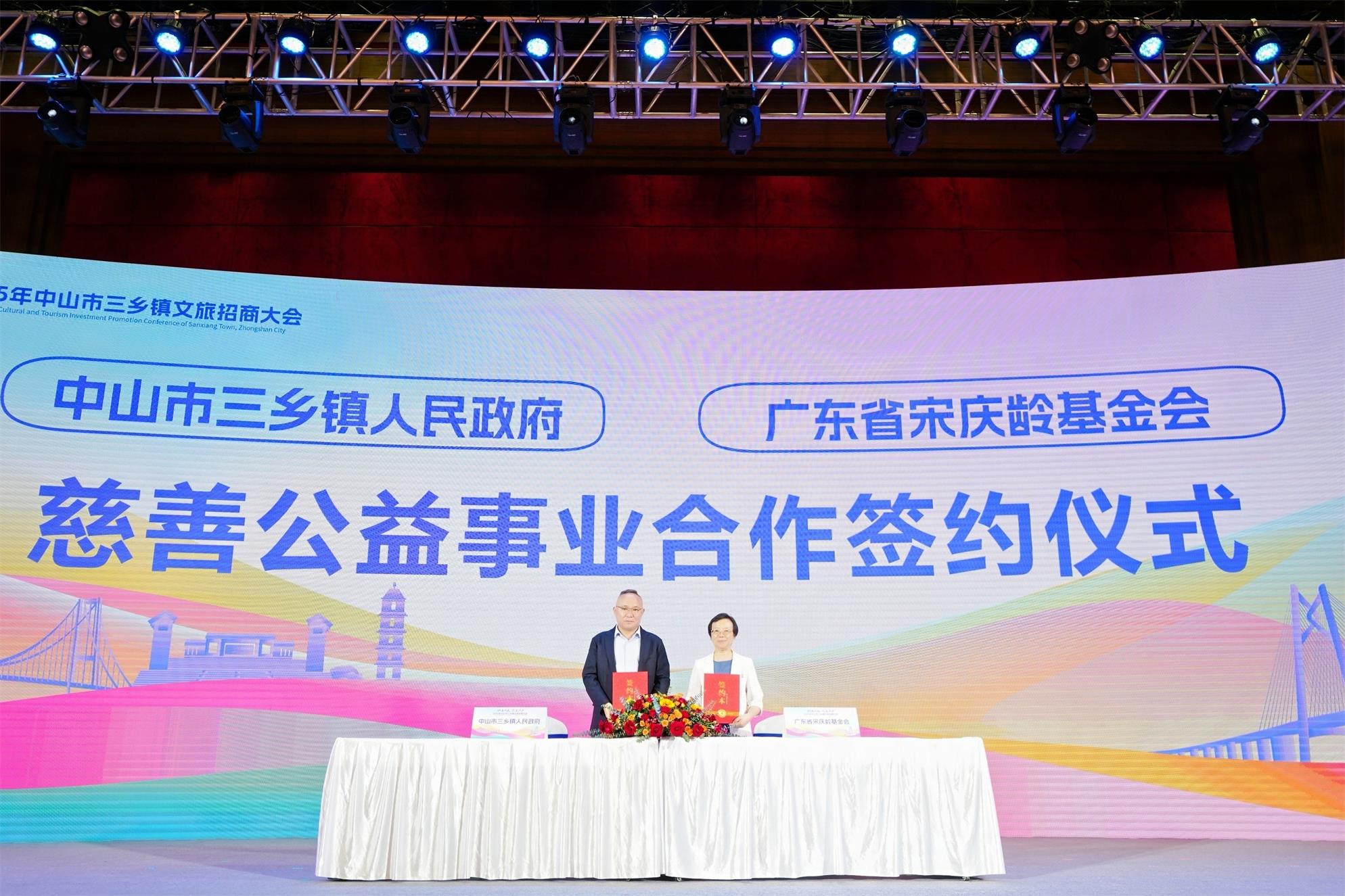 在項目簽約環節,多項重點合作順利落地。中山市三鄉鎮人民政府與廣東省宋慶齡基金會簽署慈善公益事業合作協定,為文旅事業發展融入公益力量;同時,與香港中國旅行社有限公司達成合作,共同拓展粵港澳大灣區及國際旅遊市場。