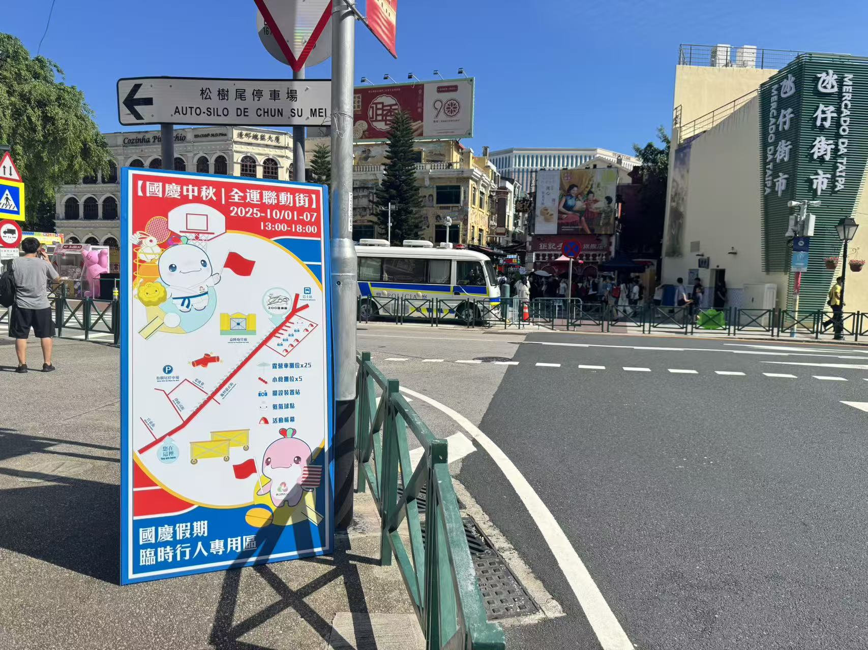 【即時新聞】因應內地國慶及中秋長假期,氹仔舊城區由即日起至10月7日實施臨時行人專用區措施,有效營造舒適步行環境,在促進旅遊消費的同時,亦為居民及遊客提供更安全的休閒空間。