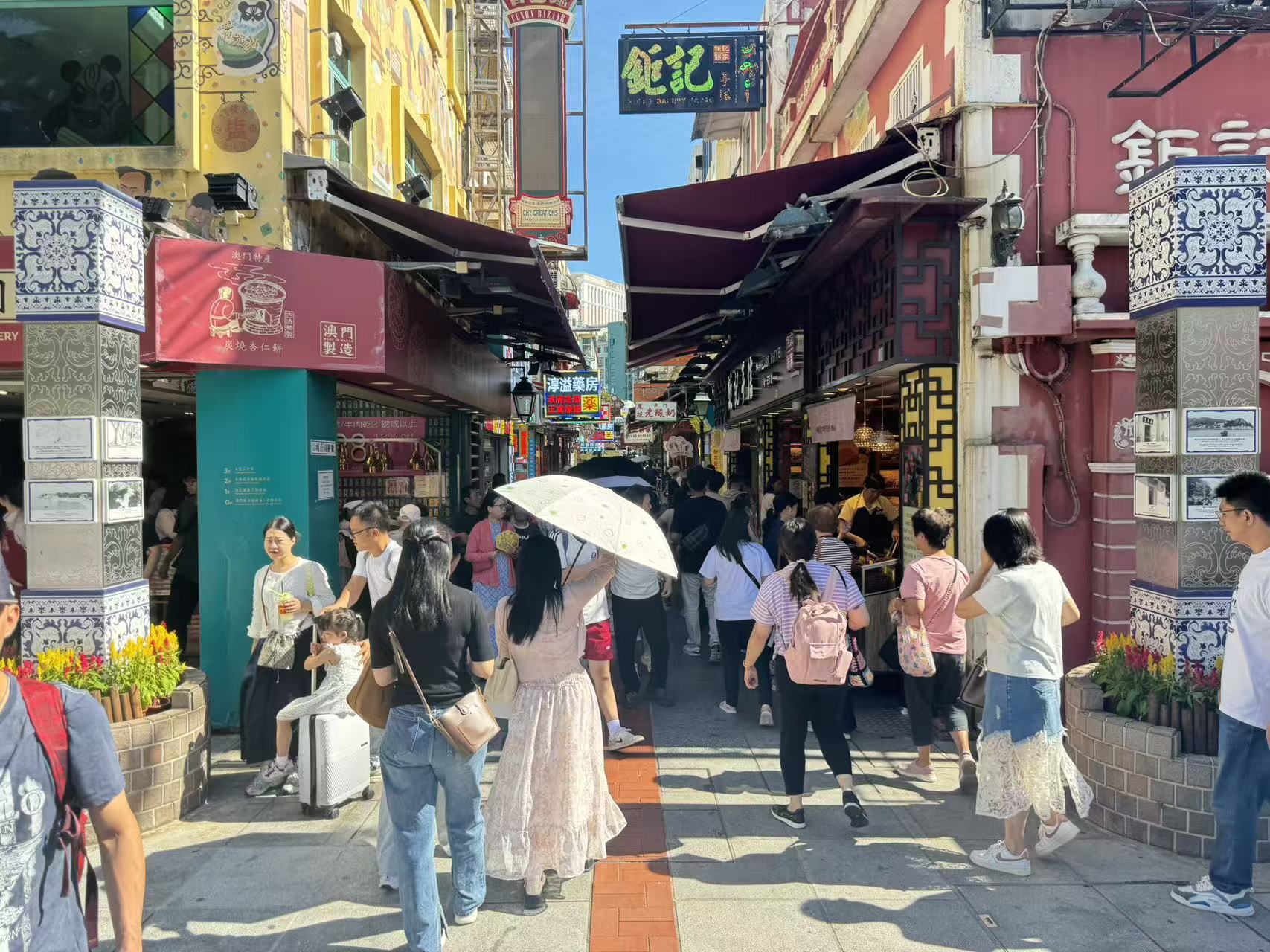 作為本澳熱門旅遊地點的官也街,今日下午所見人流絡繹不絕,市面氣氛暢旺。不少食店及商舖門外出現排隊人龍。有商戶表示,行人專用區讓遊客停留時間變長,入店選購意願也提高。旅客陳先生一家來澳旅遊,他表示,行人專用區讓帶小孩逛街更安心,不用時刻擔心車輛,能夠慢慢欣賞舊城建築,體驗葡式風情。