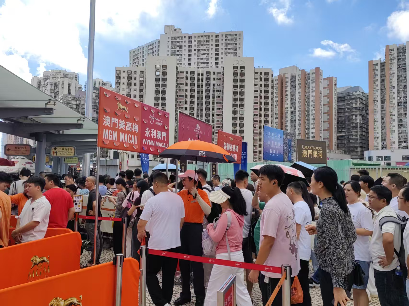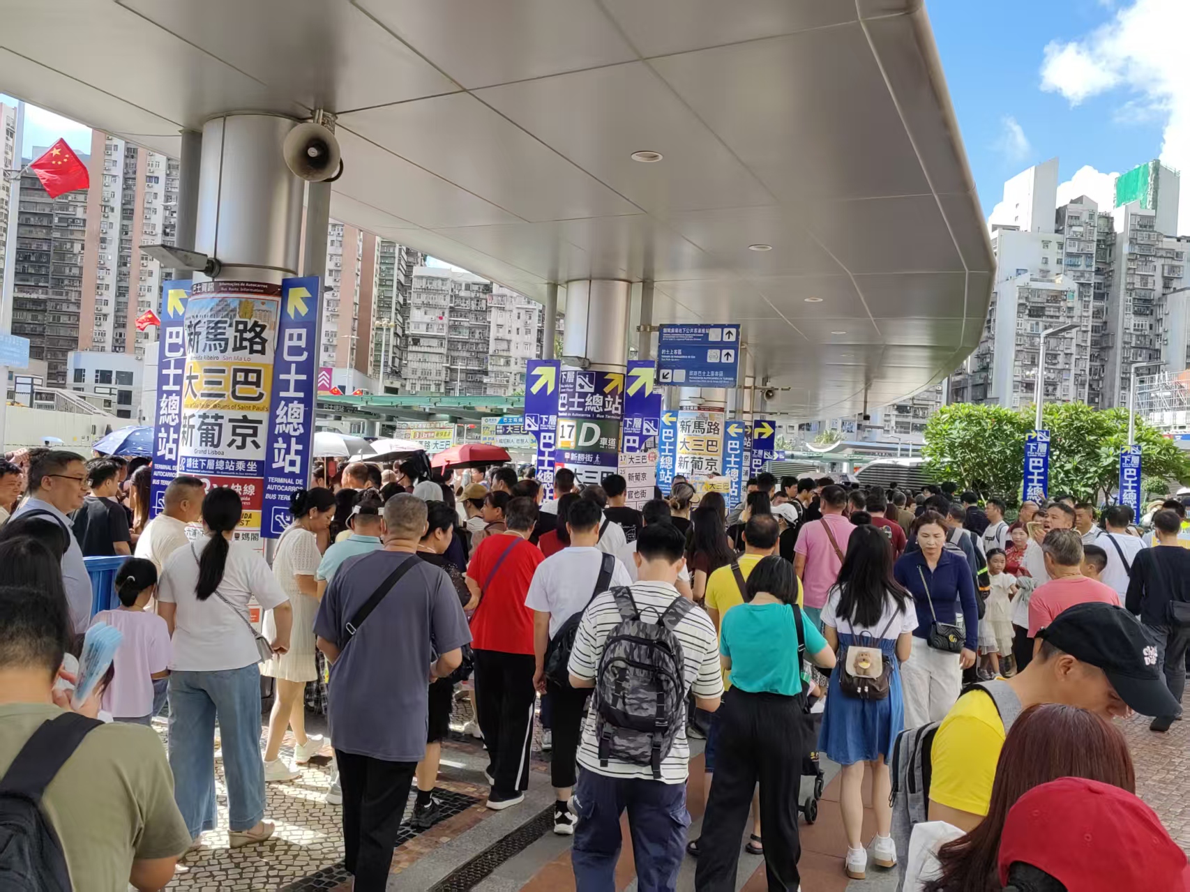 【即時新聞】內地國慶及中秋長假期第二日,關閘口岸一早便出現密集人流,大批旅客經此進入澳門,場面熱鬧。各酒店發財巴候車點大排長龍,同時亦有不少旅客選擇搭乘公共巴士,積極向現場工作人員查詢路線及支付方式等資訊。在人員引導下,口岸整體秩序良好,節日氣氛熱烈。