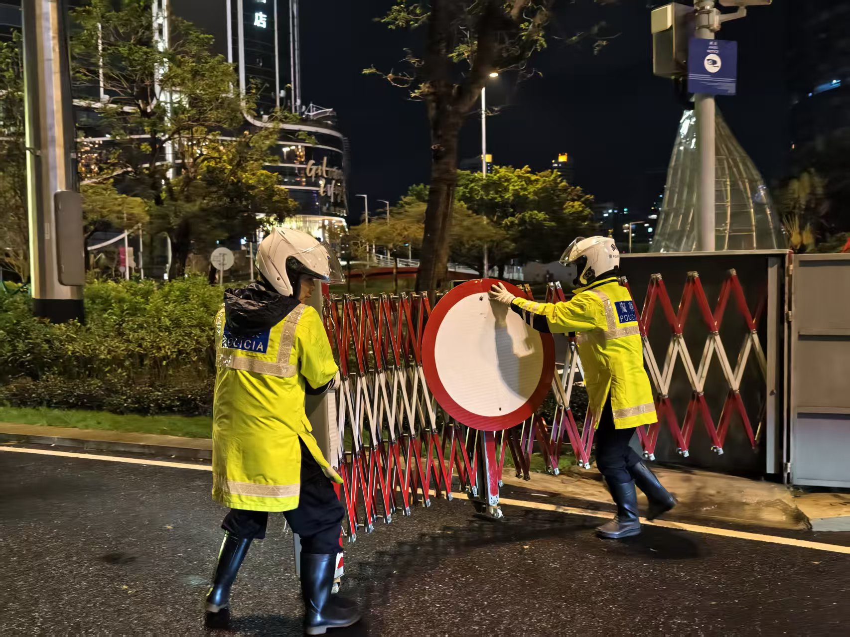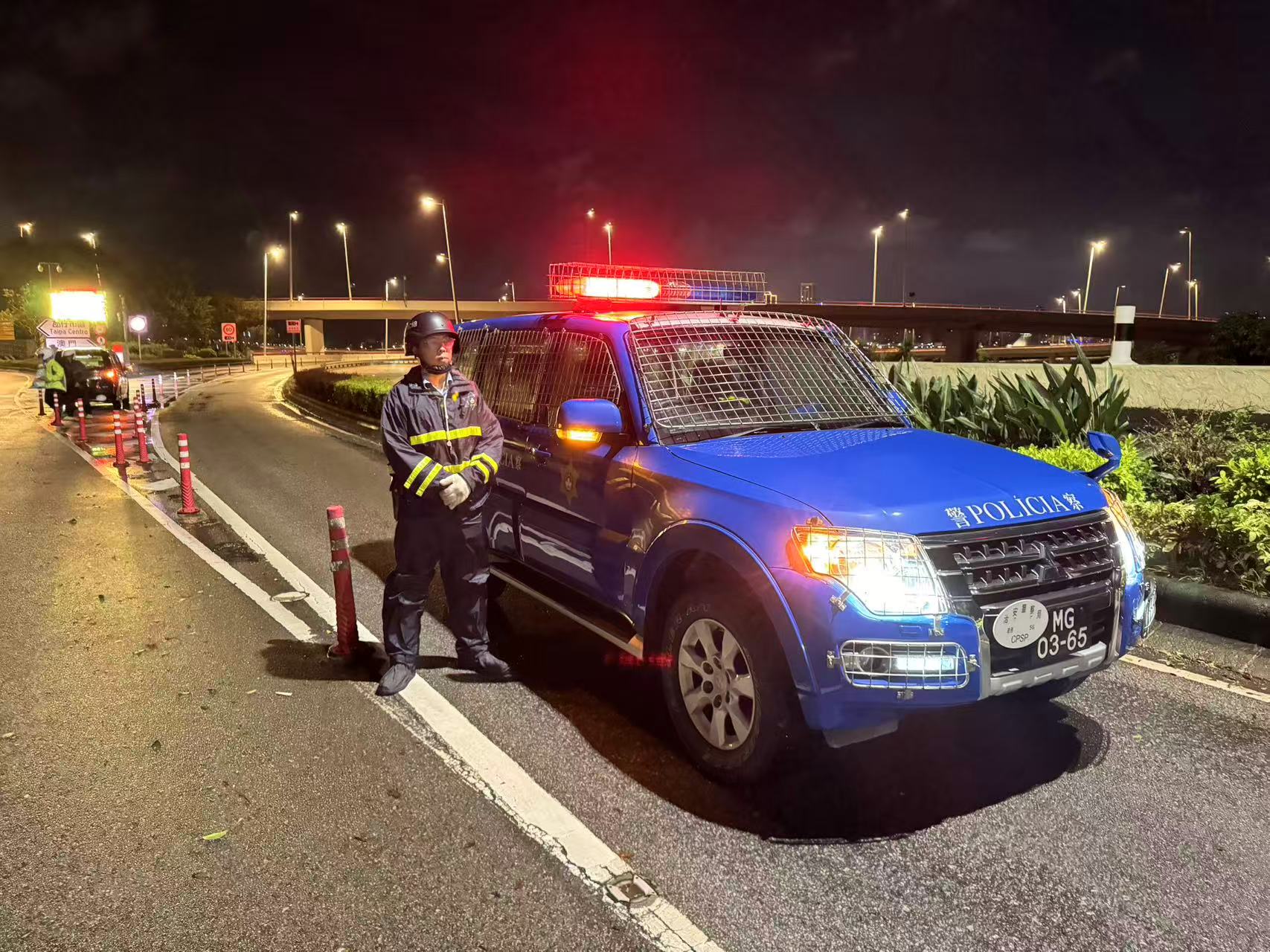 【即時新聞】颱風期間,治安警察局人員已按計劃執行跨海大橋臨時封閉措施,包括嘉樂庇總督大橋、友誼大橋、西灣大橋,並派員於西灣大橋下層車道實施交通疏導。