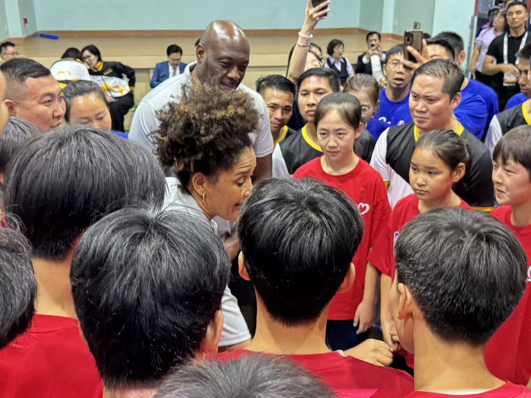 【即時新聞】「NBA 關懷行動 ×金沙關懷籃球公益周」今日下午在勞校中學舉辦首場活動—青年校園籃球交流活動,活動現場邀請NBA 傳奇球星米治•列治文(Mitch Richmond)及 NBA 教練為逾 200名勞校中學學生,以及12名「NBA 關懷行動•女生主場」計劃的鄉村師生提供籃球技術指導。活動約有240名人士參與。