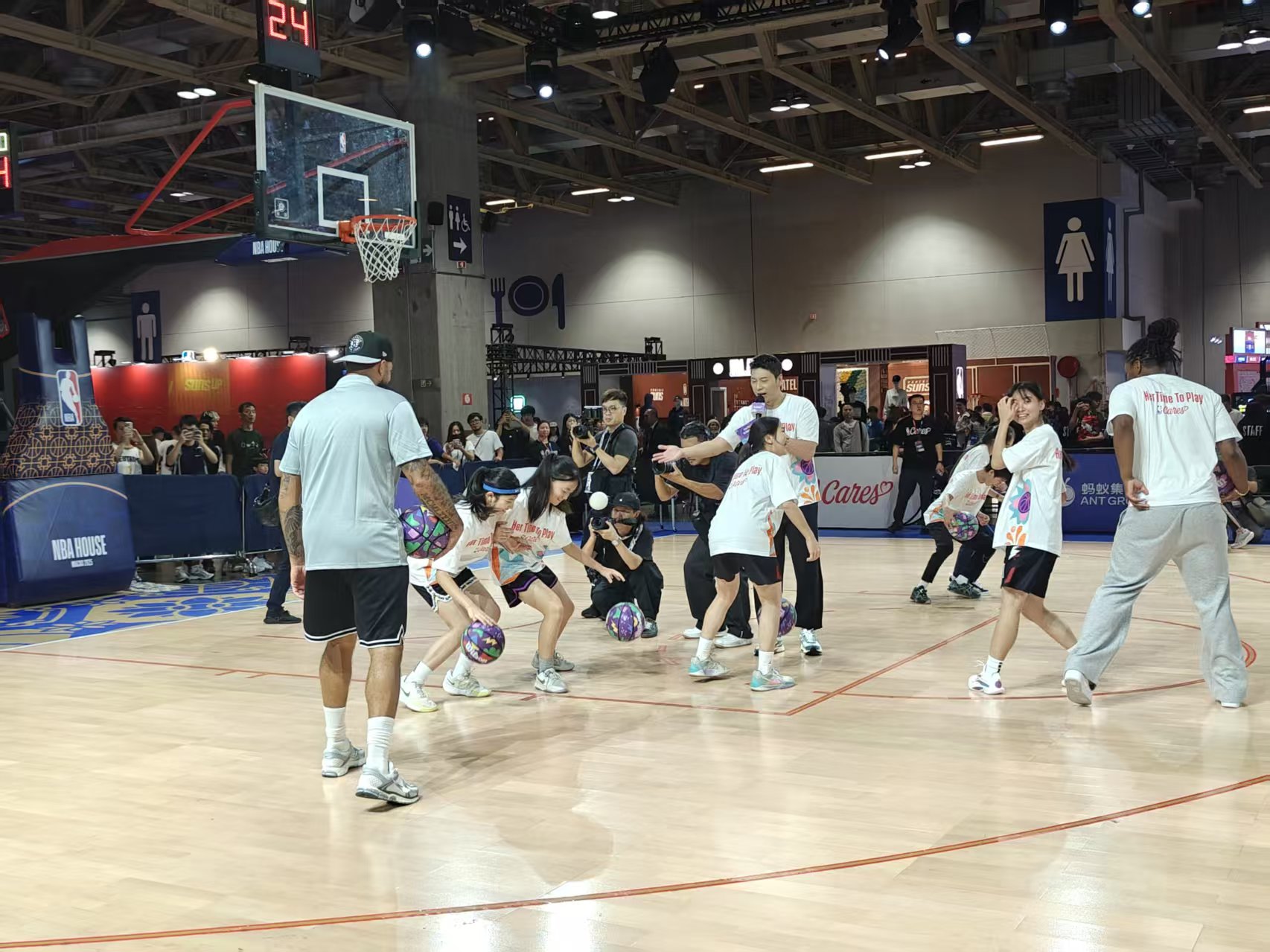 【即時新聞】在NBA中國賽今日於威尼斯人綜藝館上演壓軸之戰當日,由NBA關懷行動(NBA Cares)與金沙關懷攜手舉辦的「NBA 關懷行動 x 金沙關懷籃球公益周」亦進行壓軸活動——「女生主場」籃球交流活動。活動中午於澳門威尼斯人金光會展A館內的NBA House舉行,邀請NBA傳奇球星迪朗·威廉士(Deron Williams)及現役美國職業女子籃球聯賽(WNBA)球員 Myisha Hines-Allen 與逾30名本地校內女子籃球隊成員及「NBA關懷行動·女生主場」計劃的師生進行體育互動及交流,為公益周畫上完美句號。