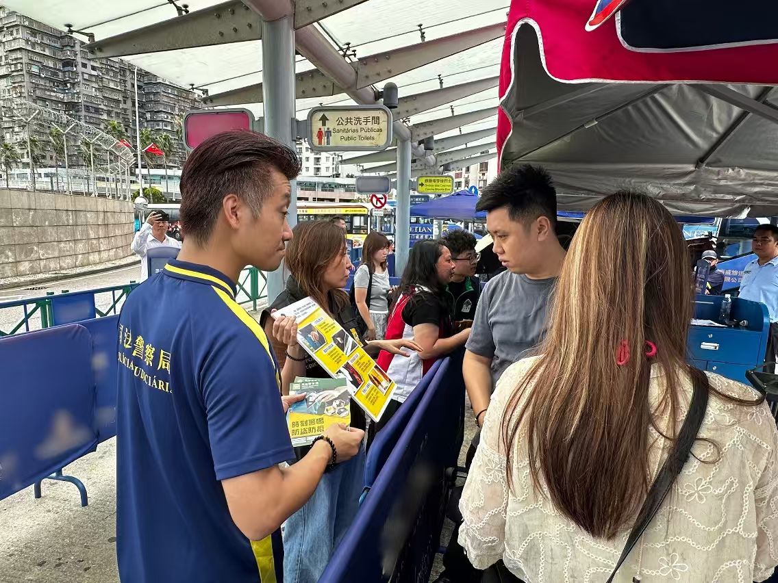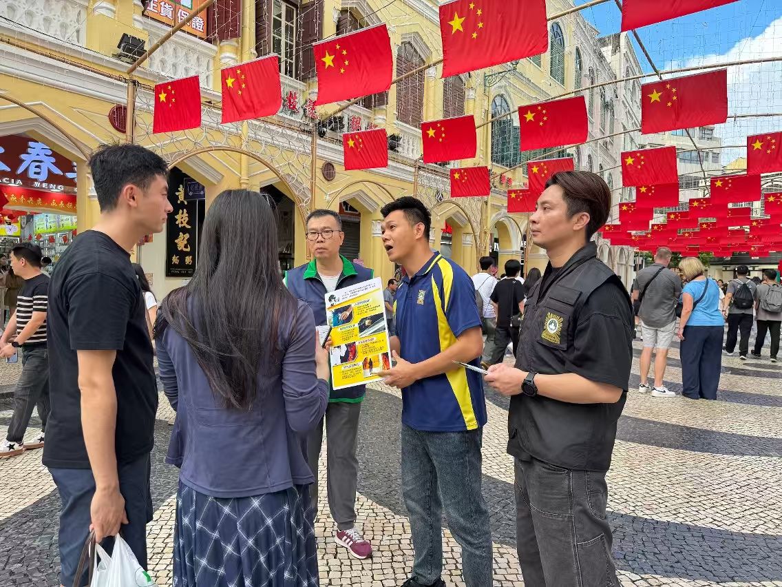【即時新聞】國慶長假期為訪澳旅客的高峰期,各旅遊區人流密集,不法分子往往伺機進行盜竊等犯罪活動。為提高市民及旅客對盜竊罪案的警惕意識與防罪能力,司法警察局派員聯同“司警局大廈防罪之友”成員展開防罪宣傳,向市民及旅客講解防盜須知,以有效預防盜竊案件發生。