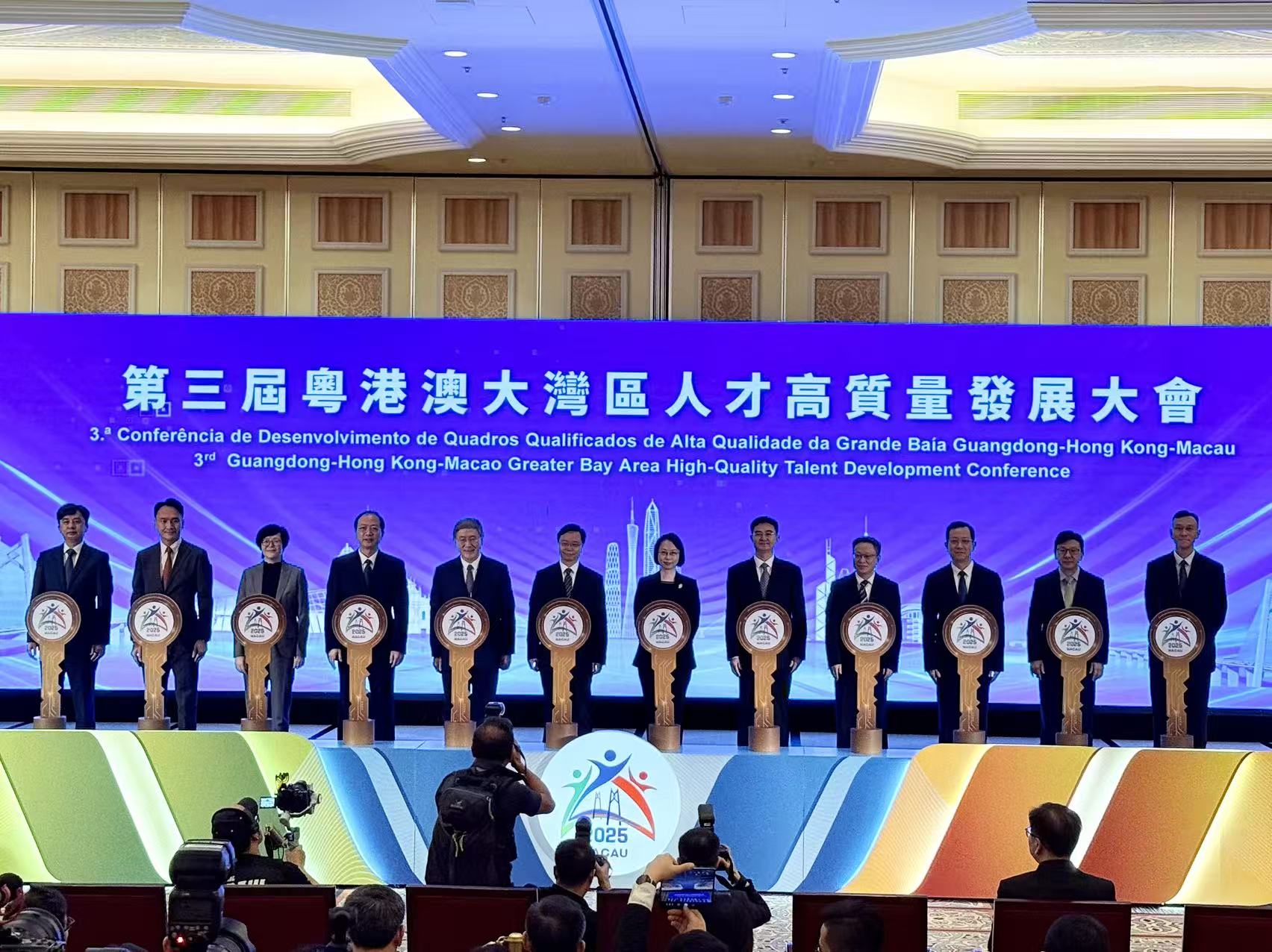 【即時新聞】由粵、港、澳三地政府輪流舉辦的“粵港澳大灣區人才高質量發展大會”於今日一連四日首次移師澳門舉行。是屆大會假澳門威尼斯人金光會展舉,以“登高望遠、海納百川、銳意進取,打造國際高端人才集聚高地”為主題。三地政府期望透過活動,向外界展示大灣區人才政策和成效,以及大灣區發展優勢和機遇,招攬世界各地人才集聚灣區發展,促進大灣區人才高地建設。