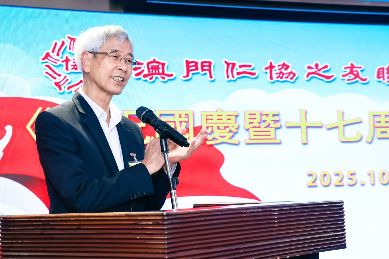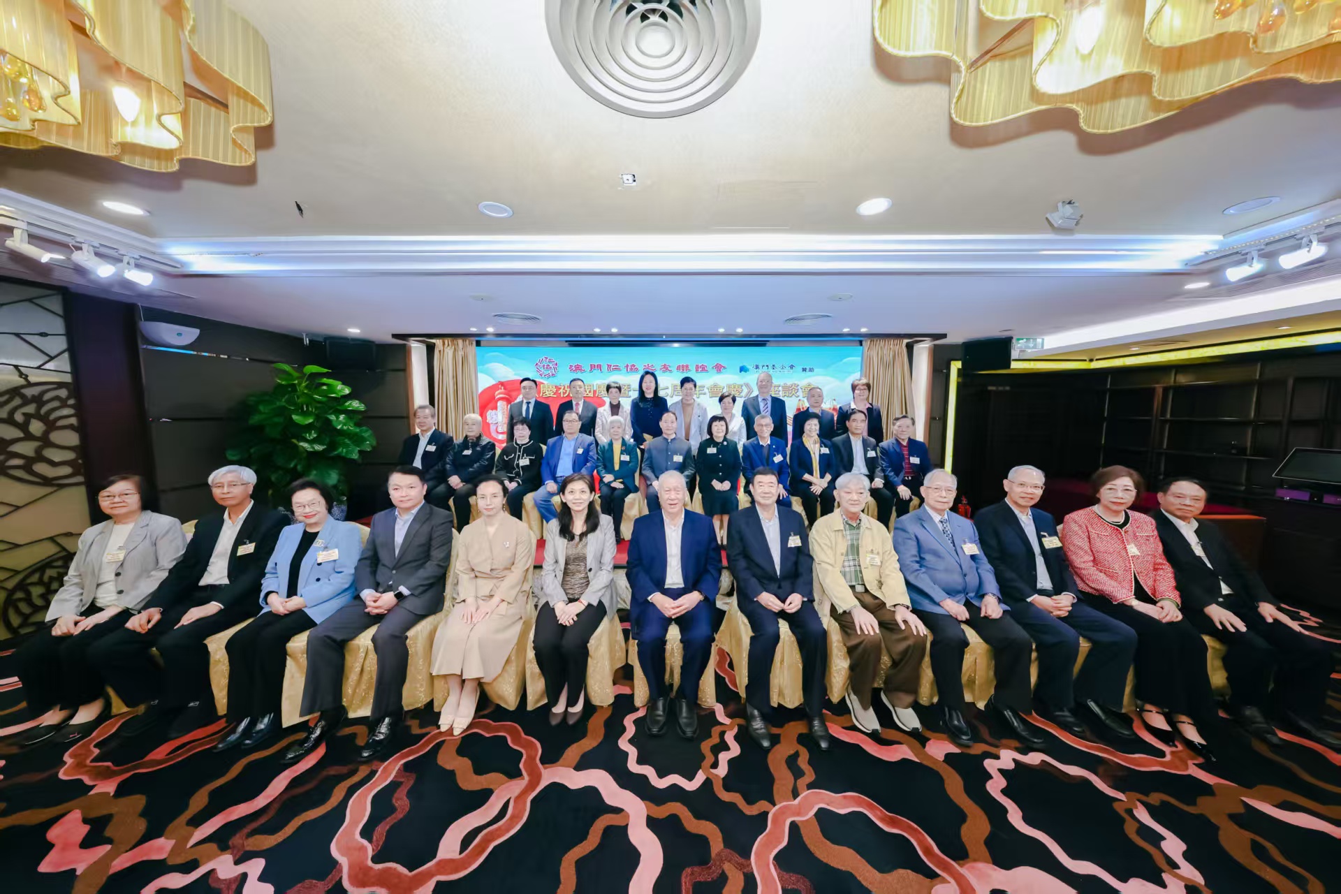 【即時新聞】由澳門仁協之友聯誼會主辦,澳門基金會贊助的《慶祝國慶暨十七周年會慶》座談會晚上假萬豪軒蓮花廳舉行,全國政協副主席何厚鏵、中聯辦協調部部長仇昱,外交公署政研部主任馬乃芳參贊,澳門基金會行政委員會委員李偉農,澳區全國政協委員陳季敏,仁協負責人廖澤雲、招銀英、王彬成、梁慶庭、劉焯華、賀定一、吳仕明、李沛霖、林笑雲、孫恩光、梁勵、楊秀雯、尤端陽、吳培娟、姚鴻明、梁玉華、黎世祺、黎振強、陳錦鳴、黃耀榮,以及澳門各社團負責人、青年代表逾90人出席。