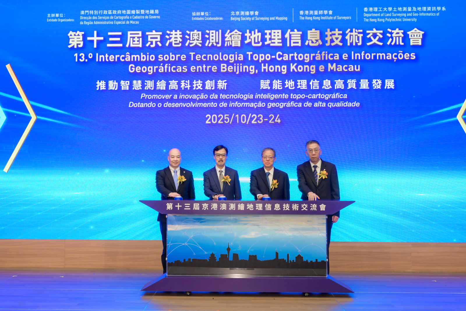 【即時新聞】由地圖繪製暨地籍局主辦,北京測繪學會、香港測量師學會、香港理工大學土地測量及地理資訊學系共同協辦的“第十三屆京港澳測繪地理信息技術交流會”於今日上午在澳門科學館會議中心召開。京港澳測繪地理信息技術交流會自1999年在北京舉辦首屆以來,每兩年由北京、香港和澳門三地輪流主辦,過去二十五年以來已舉辦十二屆,今年是2017年以來再次由澳門負責承辦。交流會以「推動智慧測繪高科技創新 賦能地理信息高質量發展」為主題,藉著交流會的溝通平台,共同促進京港澳三地測繪及地理信息技術的應用與發展,同時增進三地測繪業界同行的交流與合作。