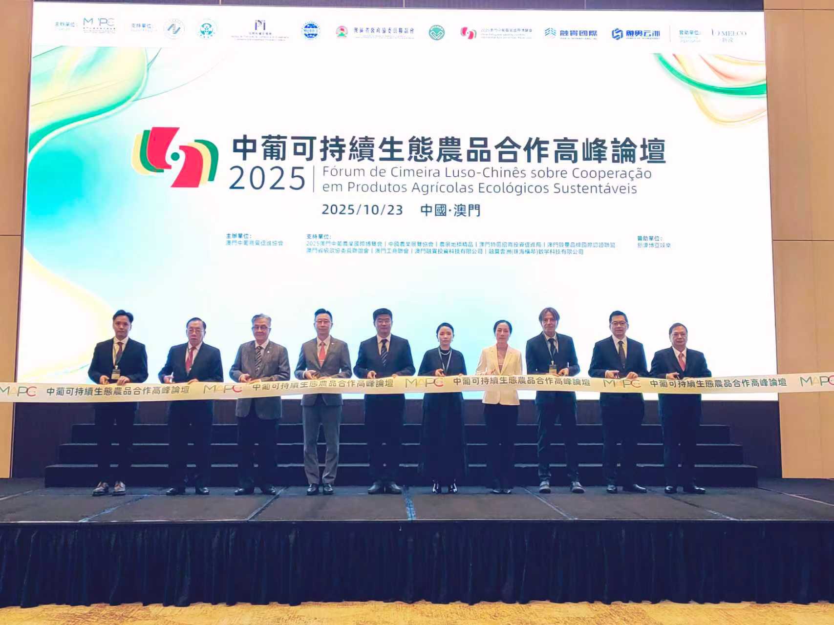【即時新聞】為進一步促進生態農業與可持續發展,澳門中葡商貿促進協會下午4時假新濠天地君悅宴會廳舉辦「中葡可持續生態農品合作高峰論壇」,匯聚200多位來自中國內地、葡語國家及聯合國糧農組織等國際機構代表,以「生態共贏·貿易創新」為核心,就生態農產品認證、綠色農業技術及公平貿易等前沿議題進行交流,共探生態農業創新路徑與可持續發展方向,為中葡農業合作注入全新動能。論壇期間還發佈融合區塊鏈溯源技術的「澳門態貓」生態農業標誌、推動與會各方共同簽署《生態農業與公平貿易倡議書》。