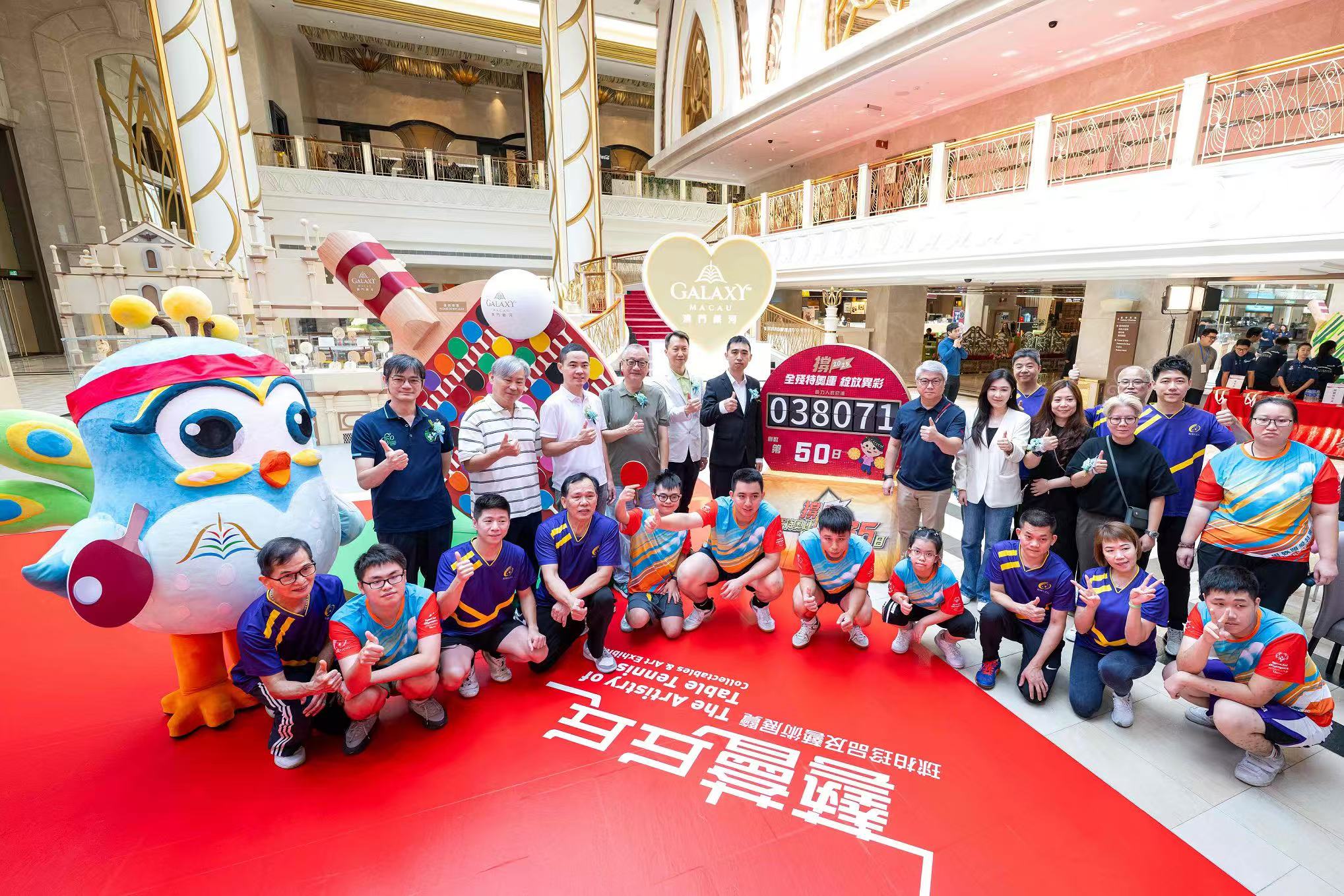 【即時新聞】為迎接中國第十五屆全國運動會在粵港澳大灣區隆重舉行,並為下月於銀河綜藝館舉行的乒乓球項目預熱,「澳門銀河」綜合度假城特別打造以乒乓球運動為主題的大型藝術作品,更成功挑戰並刷新健力士世界紀錄榮譽,獲頒「最大彩色乒乓球藝術品」的稱號。這件打破紀錄的大型藝術作品創作,旨在與來自各地的旅客和本地居民一同投入這項全國體壇盛事的熾熱氣氛,同時一再彰顯銀河娛樂集團長期致力於推廣乒乓球運動,以及促進體育與創意融合的承諾。