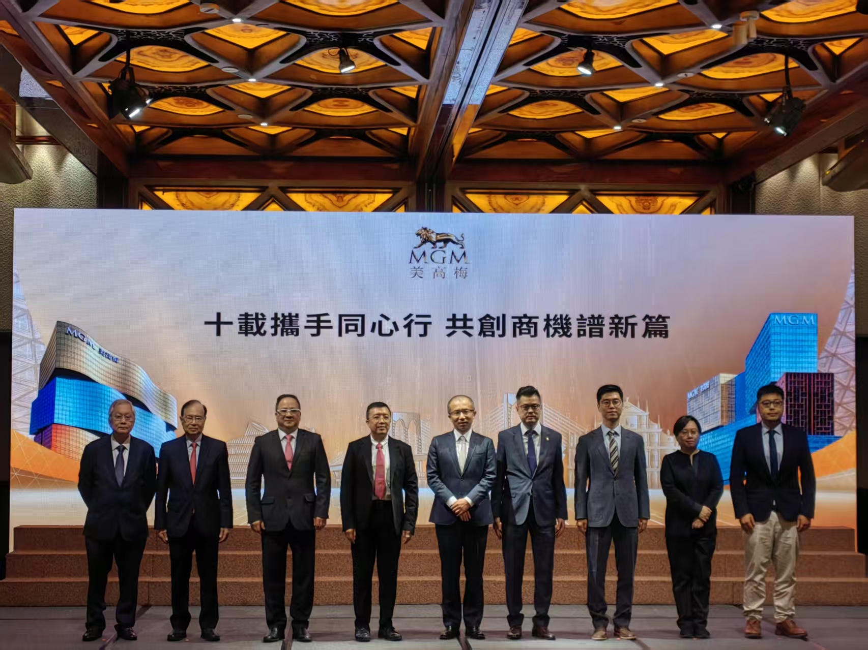 隨後,活動舉行美高梅與本地科技企業石基(澳門)有限公司簽署採購合約儀式。為進一步推動本地澳門科創生態,美高梅與澳門經濟及科技發展局認證為「科技企業認證計劃」企業石基(澳門)有限公司,簽署總值以千萬計的採購合約。美高梅將採用石基自主研發的新一代雲端酒店資訊管理系統,專為大型度假酒店的營運需求而設,能有效管理大量客房及複雜業務流程,全面提升美高梅的顧客體驗與營運效率。