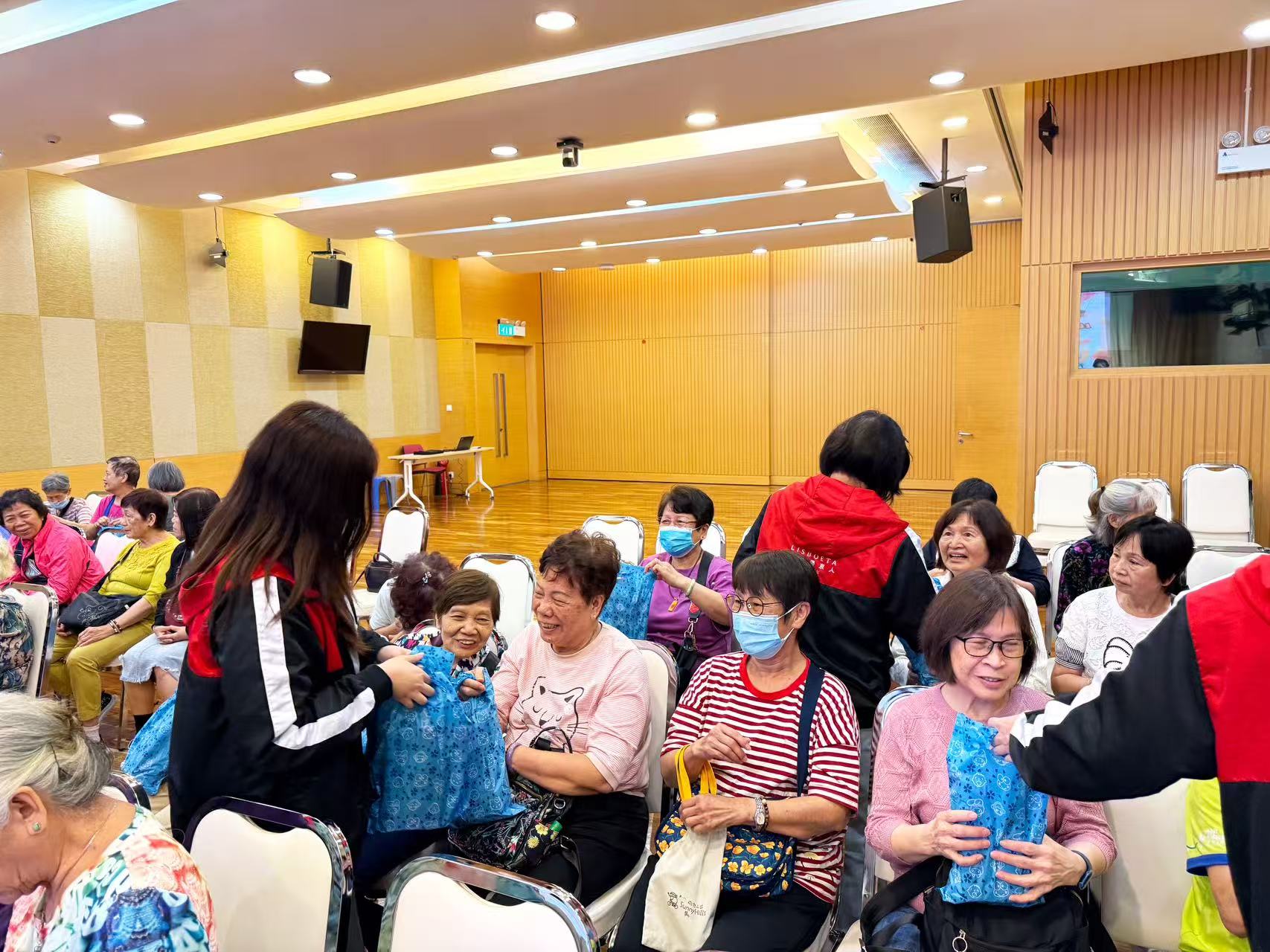 「關愛大使」於探訪期間以親切互動的方式與長者交流,分享實用保健知識與簡易熱身運動,鼓勵長者在日常生活中保持適量運動,舒展筋骨的同時亦有助促進身心健康。隨後,「關愛大使」與長者一同參與趣味遊戲環節,向長者們送上精心準備的禮物及暖心祝福,現場洋溢著溫馨與快樂的氛圍,讓關懷與祝福在社區中延續與傳遞。