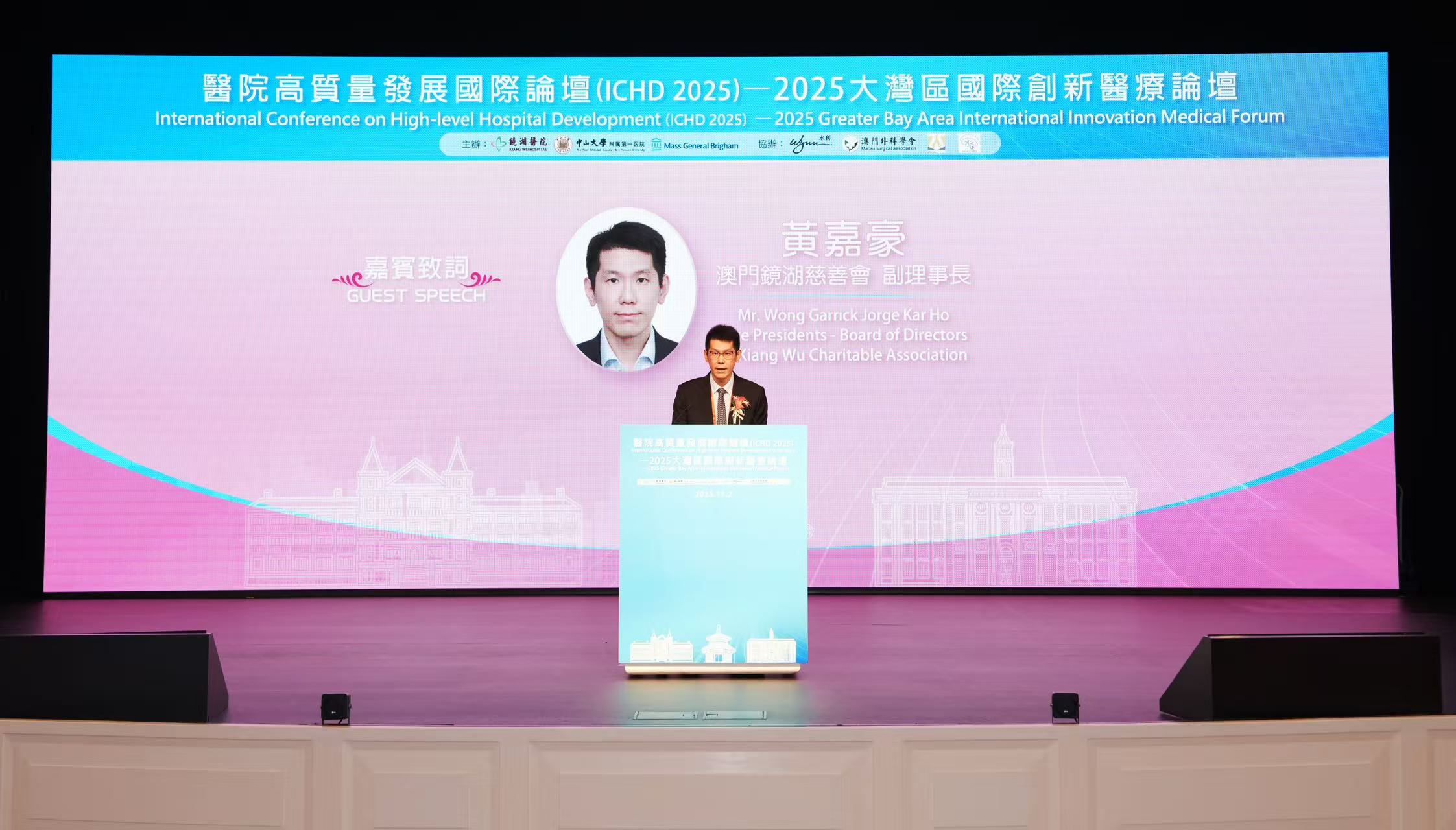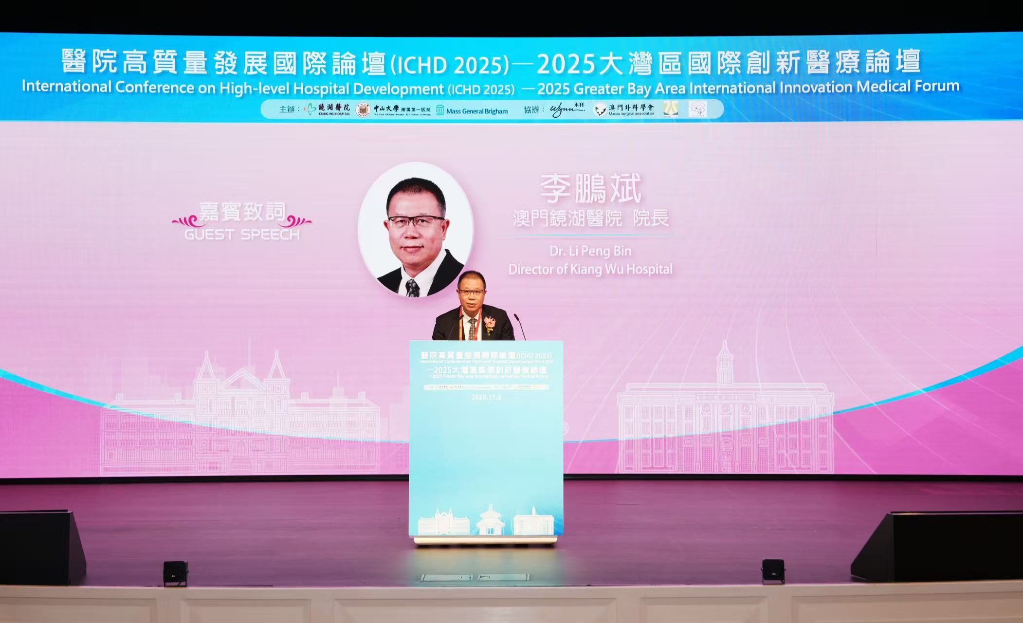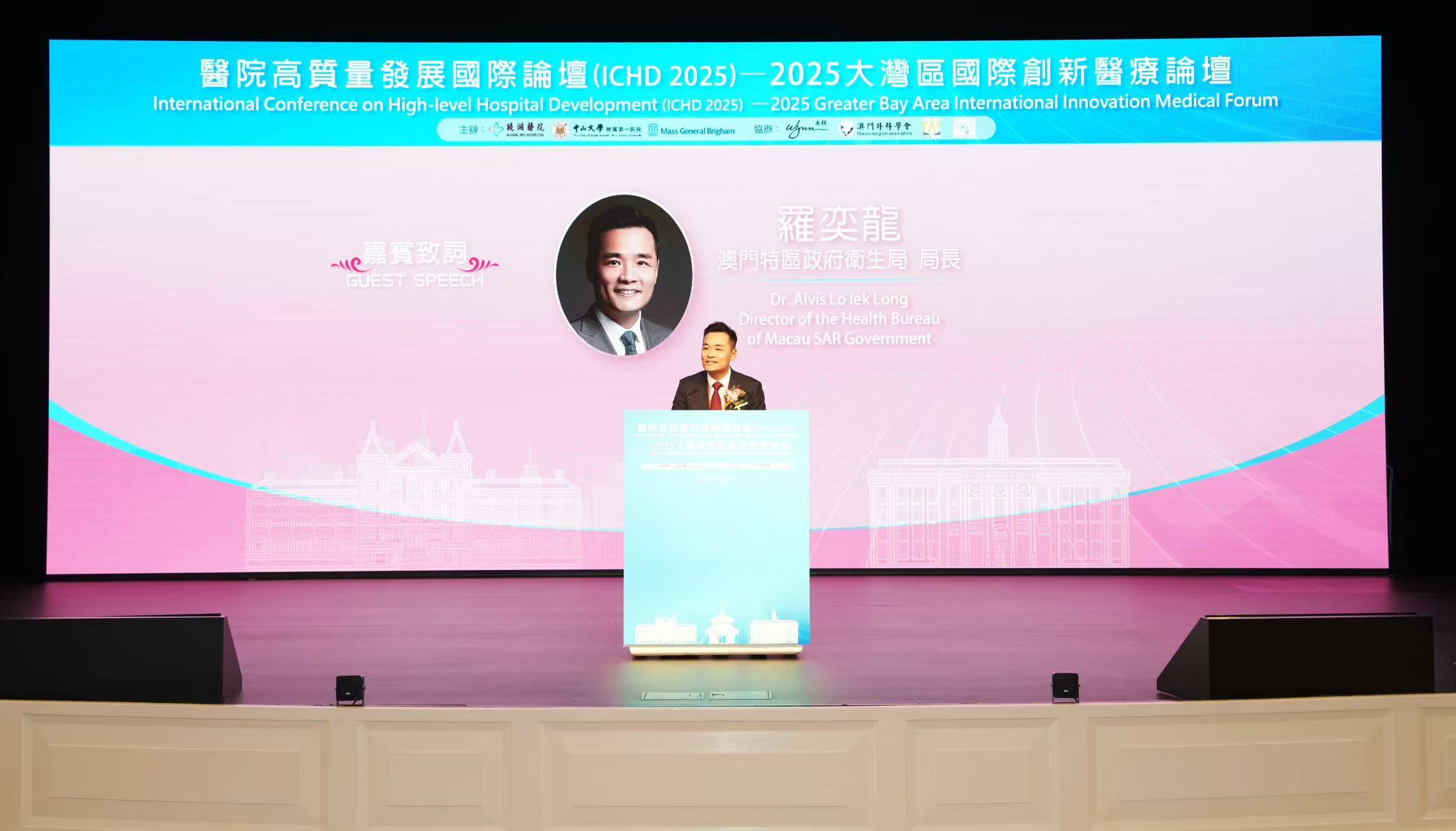 【即時新聞】為進一步推動粵港澳大灣區與國際醫學界的學術交流,促進醫療創新技術的展示與應用,由澳門鏡湖醫院、中山大學附屬第一醫院、永利澳門有限公司、澳門外科學會、澳門臨床內科學會及澳門神經醫學會合辦的「醫院高質量發展國際論壇(ICHD 2025)—2025大灣區國際創新醫療論壇」今舉行,論壇匯聚來自美國、內地、香港、澳門及台灣地區的醫療專家與學者,共同探討醫學前沿技術與臨床創新經驗,助力提升大灣區醫療水平。
