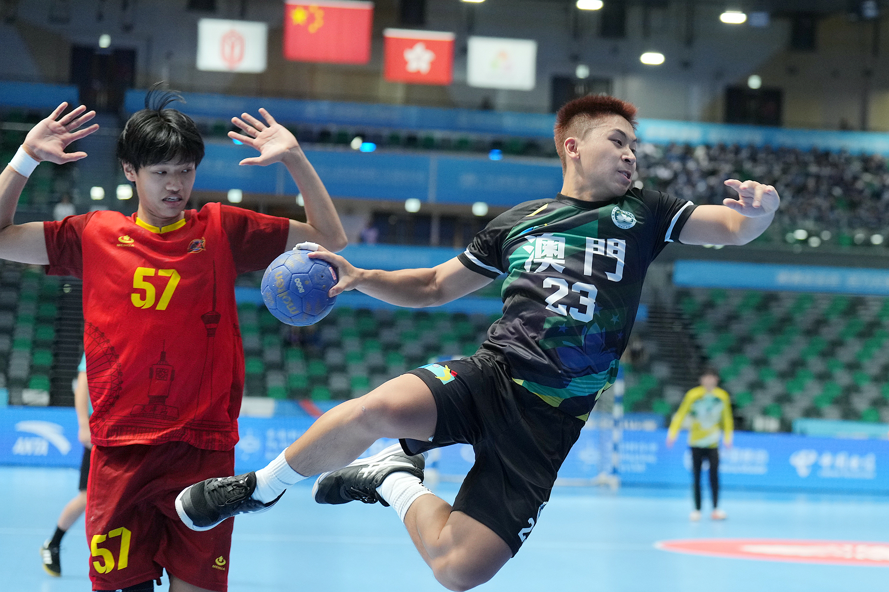 在香港賽區的手球男子組進行名次賽,澳門以20比34負天津,最終位列第10名,並已完成本屆所有賽事。