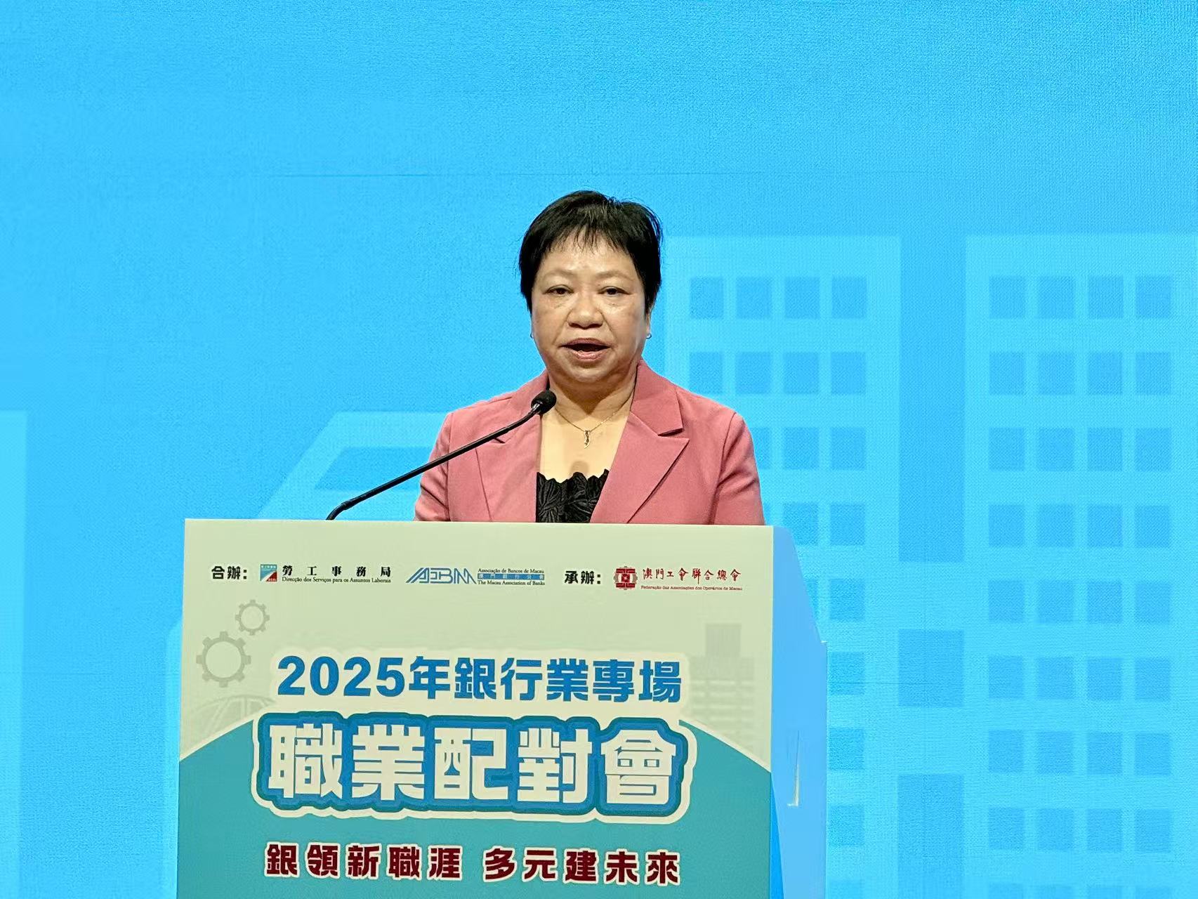 勞工局副局長陳子慧在致辭中表示,勞工局舉辦是次配對會,是切實按照“促進就業協調工作組”的工作規劃,積極回應澳門居民的就業訴求,尤其希望為青年群體拓展就業空間,並配合澳門“1+4”經濟適度多元發展策略,助力青年投身現代金融業。是次參與配對會的銀行企業提供涵蓋多個領域的文職及專業崗位,包括客戶服務、業務營運、資訊科技等,為本澳青年提供了廣闊的就業發展空間。今後,勞工局將持續與業界合作,多措並舉促進本澳居民就業。