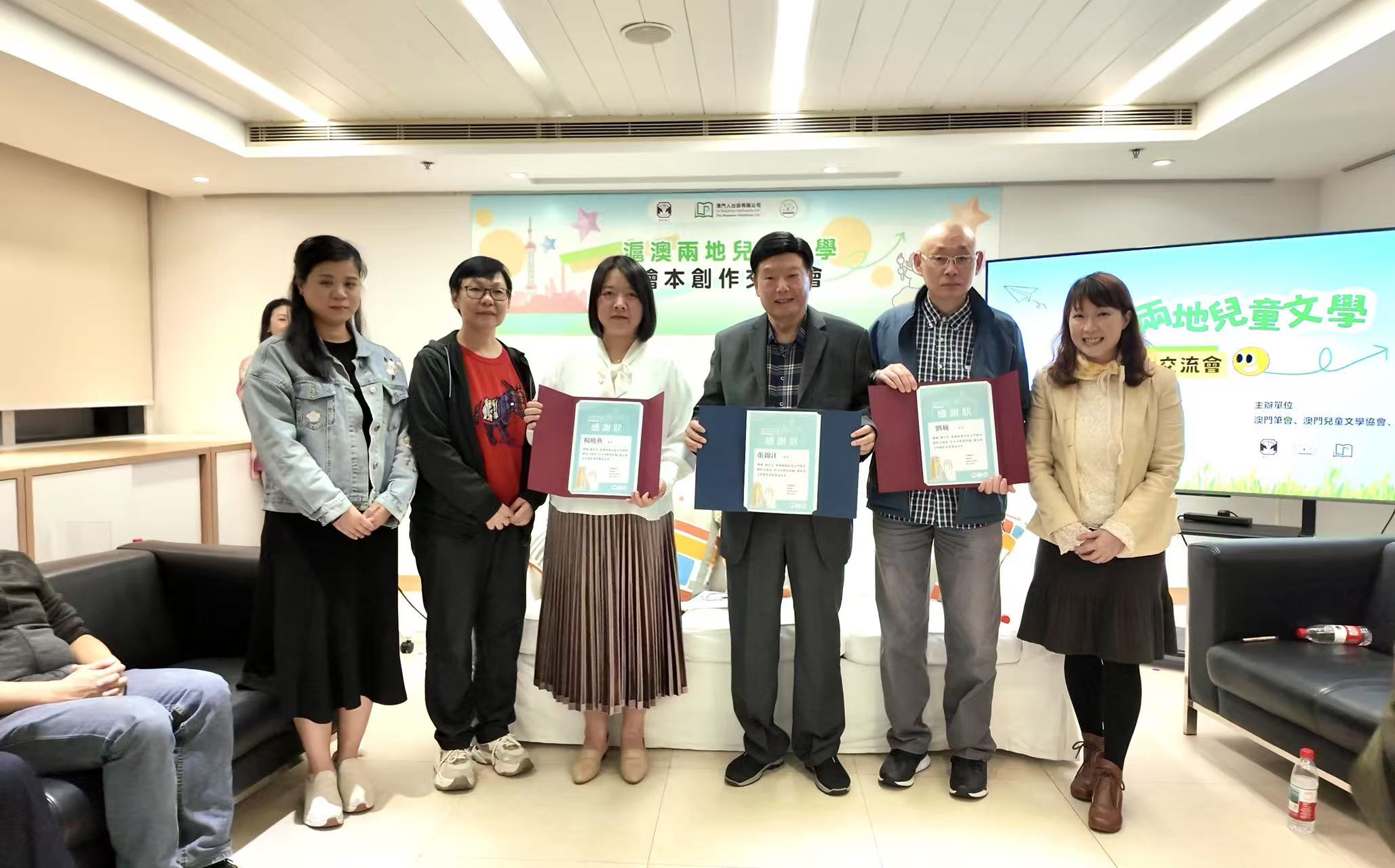 澳門筆會理事長廖子馨在致辭中指出,澳門筆會近年積極開拓兒童文學領域,期望透過是次交流,汲取外地寶貴經驗,促進本土創作水平的持續提升。隨後,她代表主辦方向來自上海的專家及支持單位致送感謝狀,以感謝他們為推動兩地文化交流所作出的貢獻。