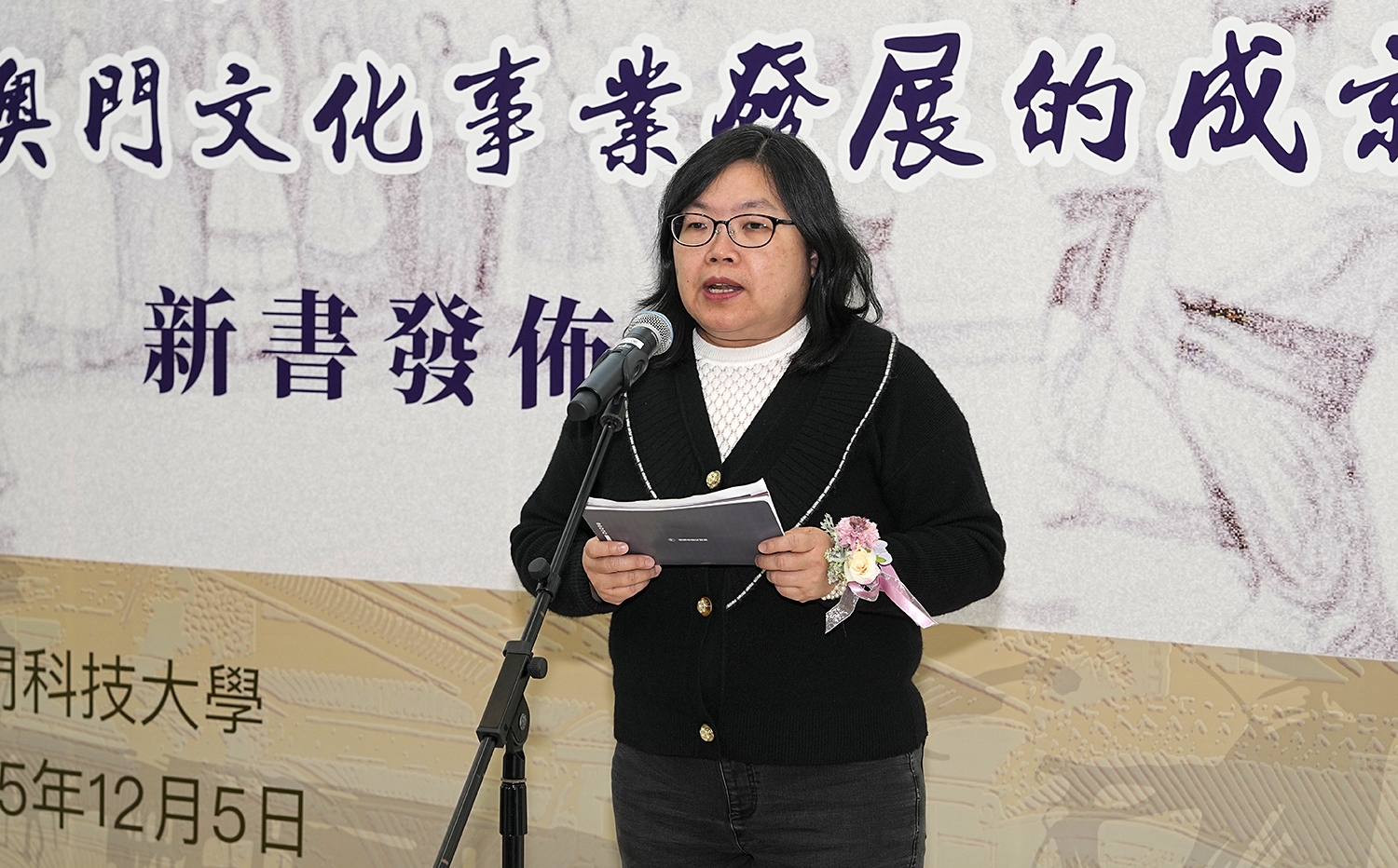 龐川致辭指出,該書全面梳理了澳門文化事業的發展脈絡、主要成就與鮮明特徵,是對回歸以來澳門文化事業的“立體化呈現”,是對澳門文化核心特質與時代價值的“體系化闡釋”,系統展現了“一國兩制”成功實踐下澳門文化事業的蓬勃氣象。強調回歸25年的實踐證明,在“一國兩制”方針指引下,澳門完全有能力在文化領域“唱出精彩大戲”,成為彰顯中華文化軟實力、促進世界文明互鑒的重要平台。澳科大師生積極參與該書的編撰工作,充分體現了澳科大服務澳門發展的責任擔當。表示澳科大將持續深化對澳門歷史文化的挖掘、研究與創新轉化,助力澳門文化事業在服務國家文化戰略、參與構建“人類命運共同體”的進程中把握新機遇、開創新局面、展現新作為,共同書寫“文化澳門”絢麗篇章。