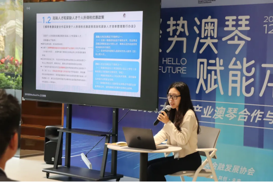 政策解讀環節緊扣企業的發展痛點,實現“靶向式”需求對接,由國家稅務總局橫琴粵澳深度合作區稅務局副科長張秋瑋聚焦稅收紅利,細緻拆解企業所得稅減免、增值稅優惠等核心要點,助力企業精準把握稅負減免空間等。