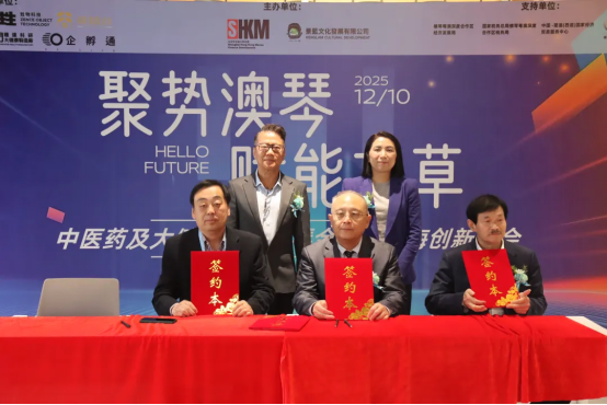 【即時新聞】“聚勢澳琴、賦能本草—中醫藥及大健康產業澳琴合作與出海創新峰會”日前在横琴港澳智慧城舉行,滬港澳金融發展協會、橫琴景藍文化發展有限公司、橫琴粵澳深度合作區政府代表共赴盛會,通過揭牌儀式、簽約儀式、政策解讀、專題分享、圓桌討論等核心環節,搭建政企精準對接、跨境協同聯動的高效平台,為跨區域產業合作與企業高質量發展注入強勁新動能。
