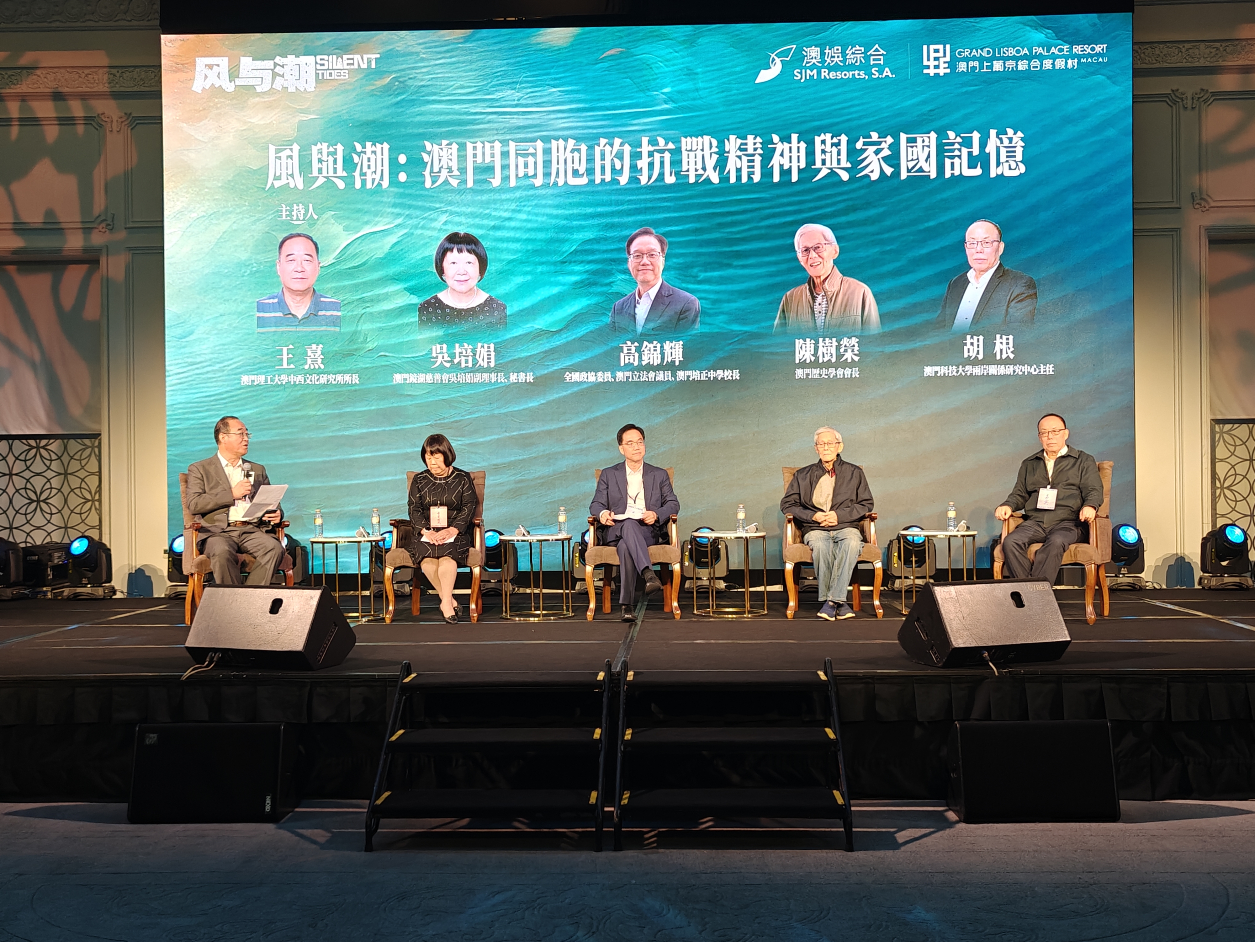 其後,在主題為「風與潮:澳門同胞的抗戰精神與家國記憶」的圓桌論壇上,培正中學校長高錦輝提到,1936年的澳門僅有70所學校、8000餘名學生,到1940年增至120多所學校,3萬多名學生,成為抗戰時期教育界的「避難所」,日軍侵華後,嶺南大學等多地學校遷至澳門,香港1941年淪陷後更多學校遷入,保障了中華民族教育的延續;科技大學兩岸關係研究中心主任胡根指,澳門擁有數百年中西文化交融史,是中西文明互鑒的典範、海上絲綢之路的燈塔,在歷史長河中與祖國利益緊密相連,儘管抗戰時期只是澳門漫長歷史中的一段插曲,卻深刻彰顯了澳門與祖國休戚與共、利益相連的緊密關係,始終堅定站在國家與民族的正義一邊。胡根又詳述了抗戰時期澳門的奉獻與困境,他提到,當時澳門總人口僅十幾萬,卻毅然接納了超過兩倍以上的內地難民,大量難民的湧入讓澳門的住宿、飲食、醫療、教育等公共資源面臨巨大壓力,即便如此,澳門各界仍傾力相助:抗戰時期,多地學校遷至澳門,為戰爭孤兒提供庇護,延續教育火種;澳門新聞界更是挺身而出,發起澳門規模最大的救災活動——「澳門四界救災會」,不僅救助難民,更籌集經費支援國內抗日隊伍;澳門居民也積極投身抗戰,有人直接參軍,亦有不少人支持葉挺將軍領導的新四軍,用實際行動助力祖國抗戰。最後,他提到,澳門是一座滿是故事的城市,希望《風與潮》的播出能讓全國青少年深入瞭解澳門的抗戰歷史,銘記這段特殊歲月,同時呼籲澳門的創作者、歷史學家深入挖掘本土歷史素材,講好澳門故事。他更期盼有更多投資者及特區政府等各方力量攜手,共同發掘更多澳門歷史中的珍貴資源,讓澳門的愛國精神與歷史底蘊得以代代傳承。