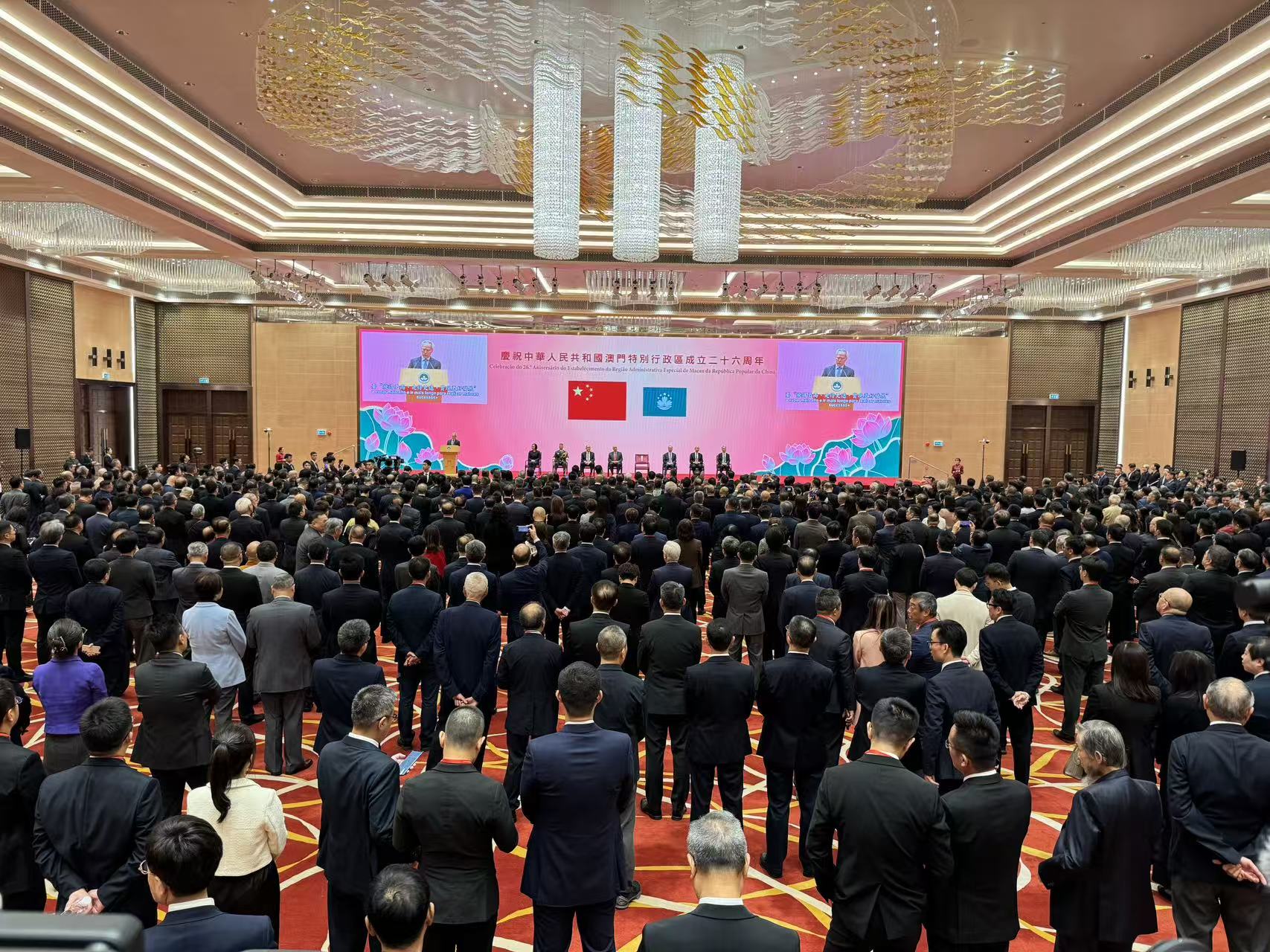 【即時新聞】特區政府上午9時半在中國與葡語國家商貿合作服務平台綜合體舉行慶祝澳門特區成立26週年招待酒會。