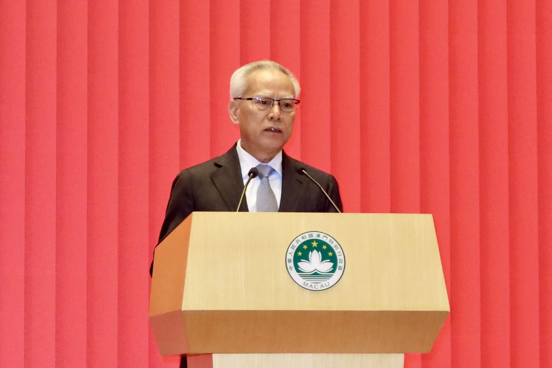 行政長官岑浩輝致辭時向全體澳門居民致以節日問候及美好祝福。他指出,日前赴京述職時,習近平主席對一年來特區政府和澳門各界攜手奮鬥所取得的新進步給予了充分肯定和勉勵指導。習主席對澳門殷切關懷、寄予厚望,深刻指出特區政府要主動對接國家“十五五”規劃,堅持和完善行政主導,扎實推動經濟適度多元發展,不斷提升治理效能,更好融入和服務國家發展大局。為澳門更加務實進取地推動當前及今後一段時期澳門的發展,提供了根本遵循,堅定了信心底氣。特區政府必將團結帶領社會各界認真學習領會、堅定貫徹落實習主席的重要指示精神和中央的重大決策部署,持正革新、奮發同行,不斷開創“一國兩制”事業高質量發展新局面。
