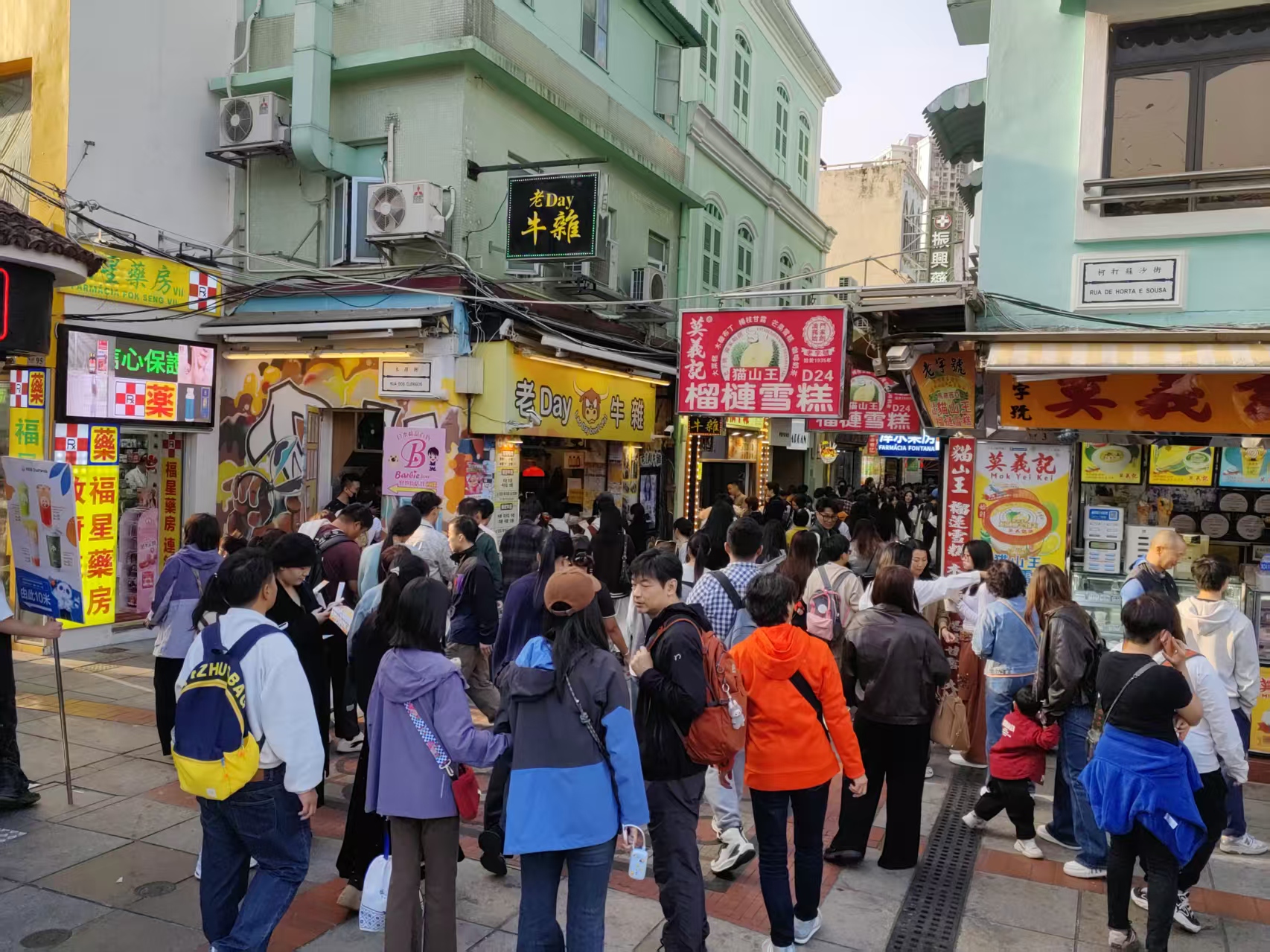 【即時新聞】今日是澳門回歸紀念日補假,與冬至補假疊加聖誕節形成連續長假,有不少市民趁假期外出逛街,亦有不少旅客自製假期專門來澳遊玩打卡,感受聖誕節日氣氛,氹仔官也街及周邊商圈人頭湧湧,多間牛雜店、特色小吃店、葡撻店及手信店等門前大排長龍,氛圍濃厚。