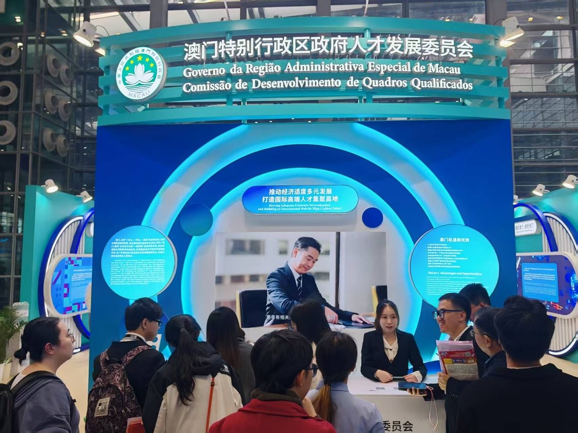 應廣東省人力資源和社會保障廳的邀請,人才委於“百萬英才匯南粵”秋季大型綜合招聘會中設置展位,展示澳門的社會及經濟發展現況、澳門具備的優勢及機遇等,並重點介紹自2025年12月2日起開展的第三期人才引進計劃,包括與重點產業相關人才計劃的申請詳情。