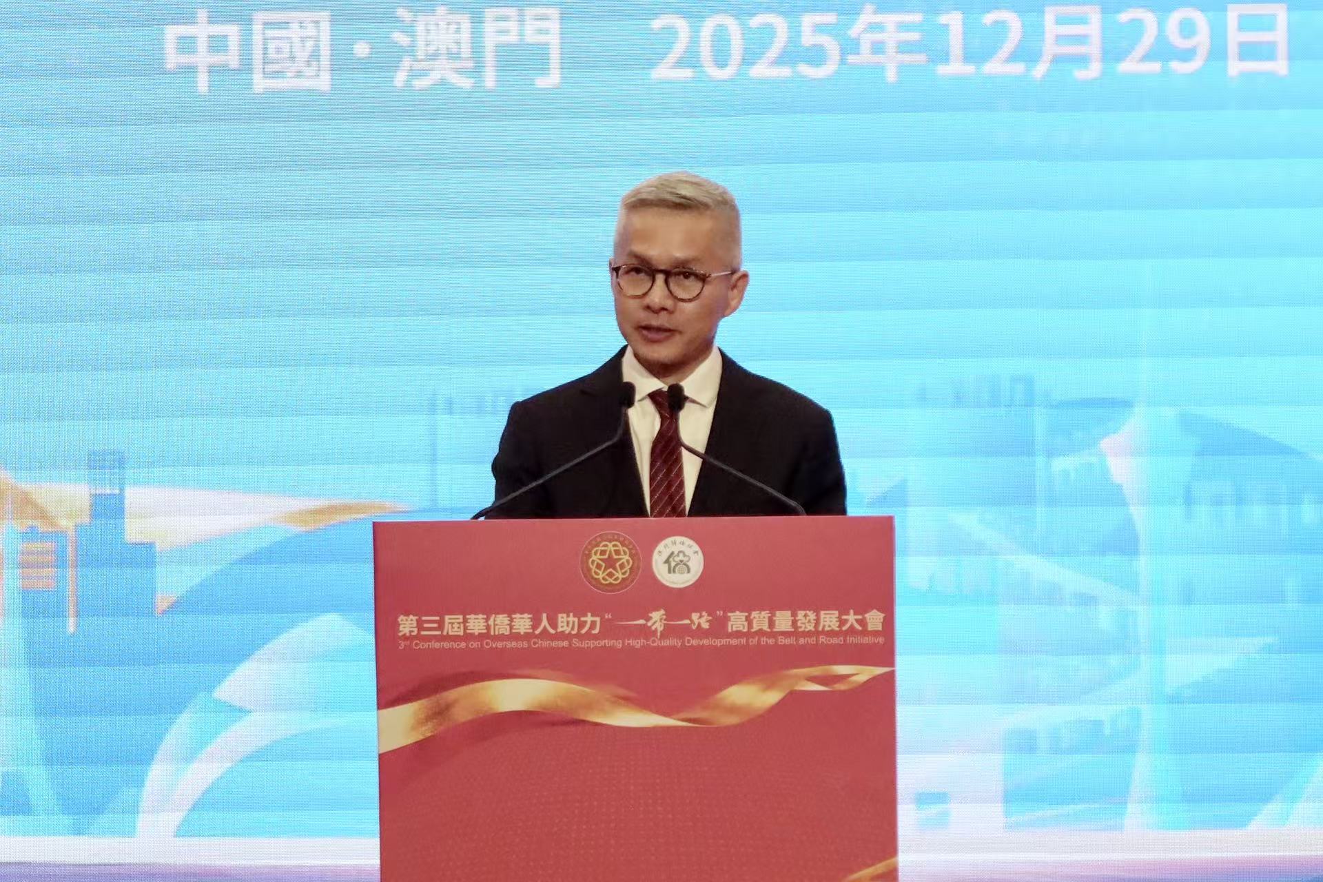 經濟財政司司長戴建業致辭時表示,2026年是國家「十五五」規劃的開局之年,特區政府將持續發揮自身優勢,進一步完善政策支持體系,優化營商環境,為僑商僑領在澳投資興業提供更堅實的保障,支持僑界資源與澳門金融、科技、文旅等產業深度融合;同時,持續做好面向東盟、輻射葡語、西語國家的經貿合作平台,依託僑界橋樑作用,促進中外文明交流互鑒,講好中國故事、傳播澳門聲音,讓「共商共建共享」的理念更加深入人心,助力「一帶一路」建設跑出高質量發展的「加速度」。期望本次大會能進一步凝聚僑心、匯聚僑智、發揮僑力,並讓更多僑界朋友親身感受澳門以至粵港澳大灣區的活力,將「澳門平台」轉化為全球機遇,共同參與「一帶一路」高質量發展,為構建人類命運共同體作出新的更大貢獻。