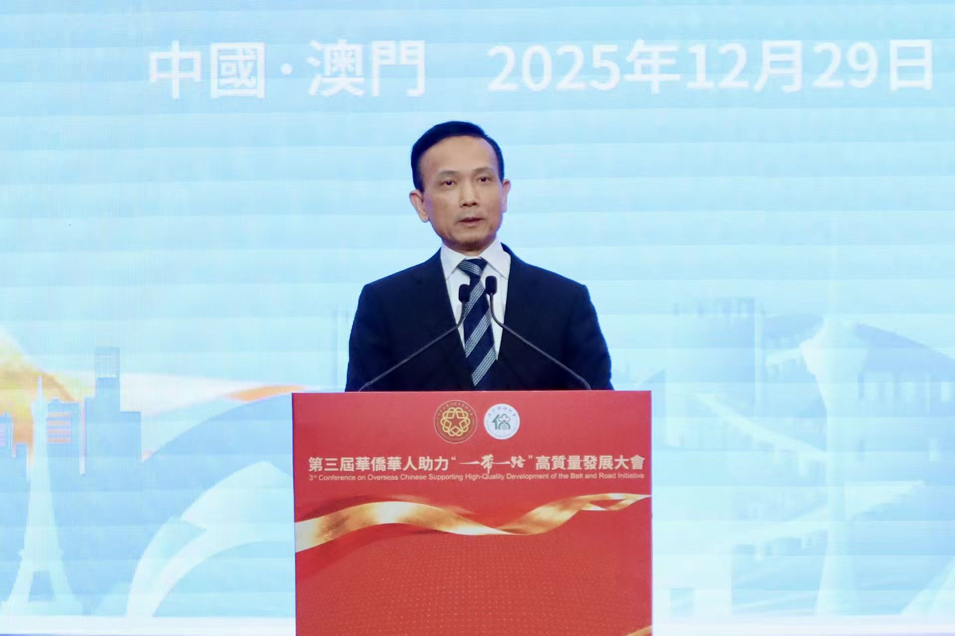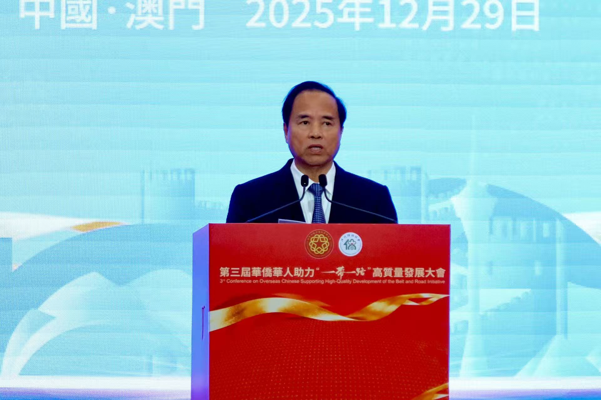 全國政協港澳台僑委員會主任劉賜貴致辭稱,二十屆四中全會對「十五五」時期擴大高水平對外開放作出系統謀劃,明確部署了高質量共建「一帶一路」的路徑與目標,致力於開創合作共贏的新局面,為廣大華僑華人施展才華提供了廣闊舞台,也為大家積極參與和推動「一帶一路」建設指明了奮鬥方向。他向廣大華僑華人提出三點期望,一是把握發展機遇,做高質量共建「一帶一路」的踐行者;二是促進民心相通,做深化文明交流互鑒的傳播者;三是發揮獨特優勢,做助力澳門繁榮穩定的參與者。相信在大家共同努力下,必將共享發展機遇,為推動構建人類命運共同體作出新的更大貢獻。