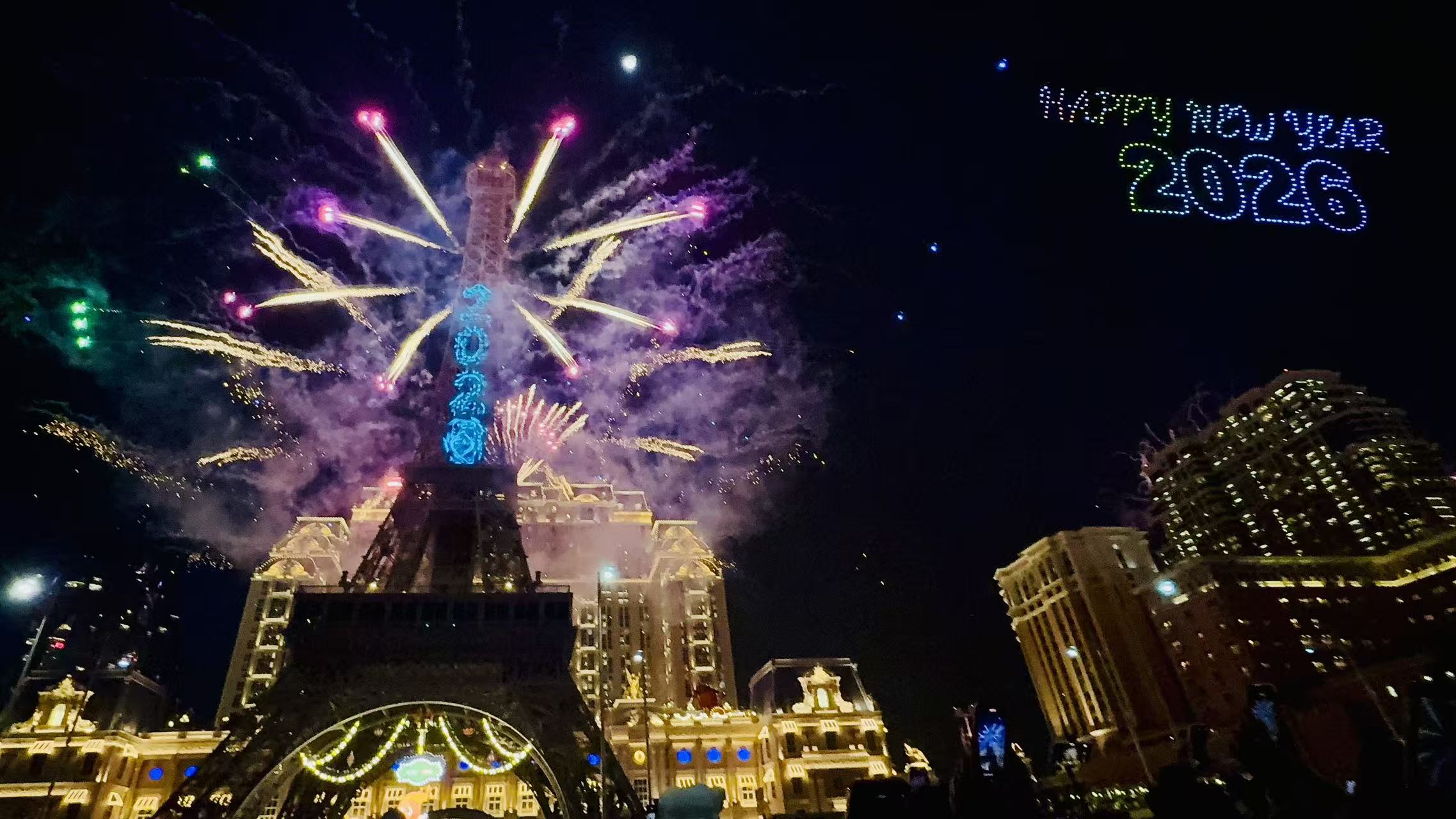 進入倒數階段,澳門巴黎鐵塔率先以耀目光效匯演揭開序幕。隨著萬人倒數聲逐漸臨近,大型煙花匯演將於澳門威尼斯人、澳門巴黎人、澳門倫敦人奪目綻放,吸引眾多市民及遊客到場慶賀,共同踏入新的一年。
