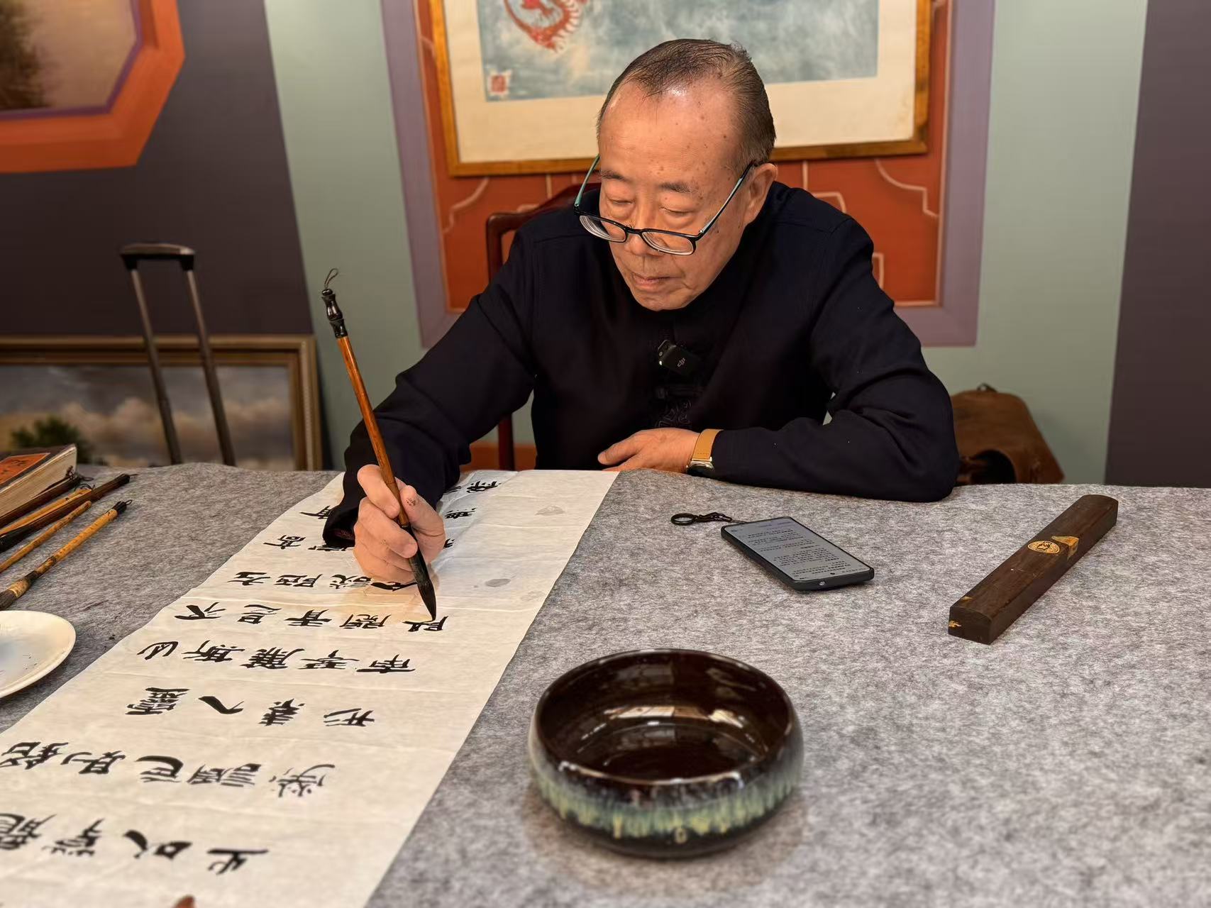 活動創新採用“藝術家現場展演+深度互動”模式,尹景威、歐耀南、溫子成等資深藝術家與非遺傳承人傾情助陣。書法專場上,藝術家揮毫潑墨傳授技藝;非遺體驗現場,傳承人手把手指導製作;粵曲表演時,經典唱段穿巷而過,老街坊跟唱、遊客駐足,畫面溫暖動人。社區微展覽更讓藝術走出高牆,實現“觀賞—體驗—感知”全鏈路文化浸潤。