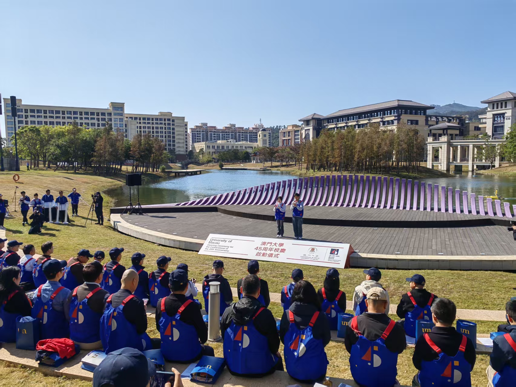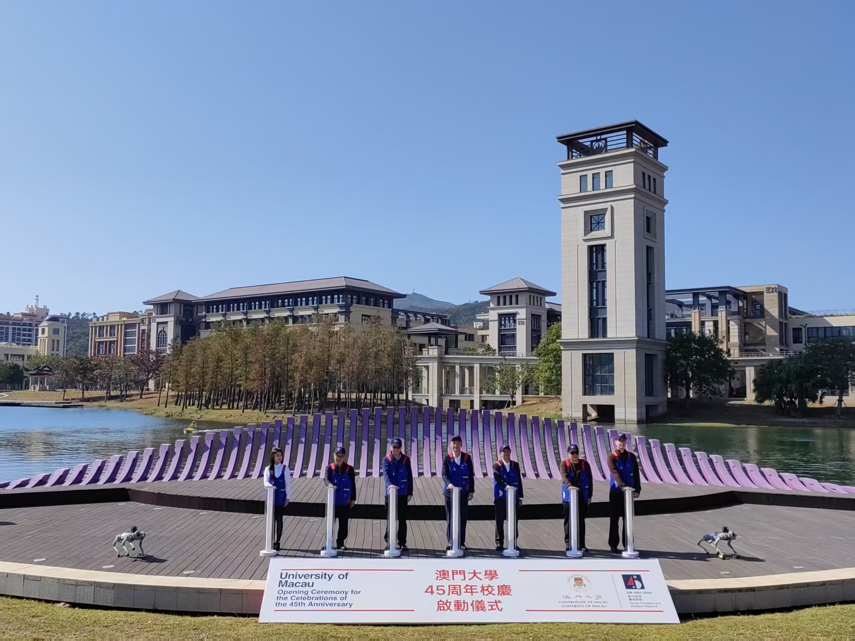 【即時新聞】澳門大學於校內水劇場舉行45周年校慶啟動儀式,由社會文化司司長代表、教育及青年發展局局長龔志明,中聯辦教育與青年工作部部長李雪飛,澳門大學校董會主席林金城,澳門大學校長宋永華,校友代表、澳門大學校友會會員大會主席區秉光,學生代表、澳門大學學生會會員大會主席王曉樺,學生代表、澳門大學研究生會主席葉爾凡江.玉山江等主禮,一眾特區政府官員、中央駐澳機構代表、立法議員、教育界人士、獎學金捐贈人、合作伙伴及澳大師生校友等共聚一堂,見證這一重要時刻。